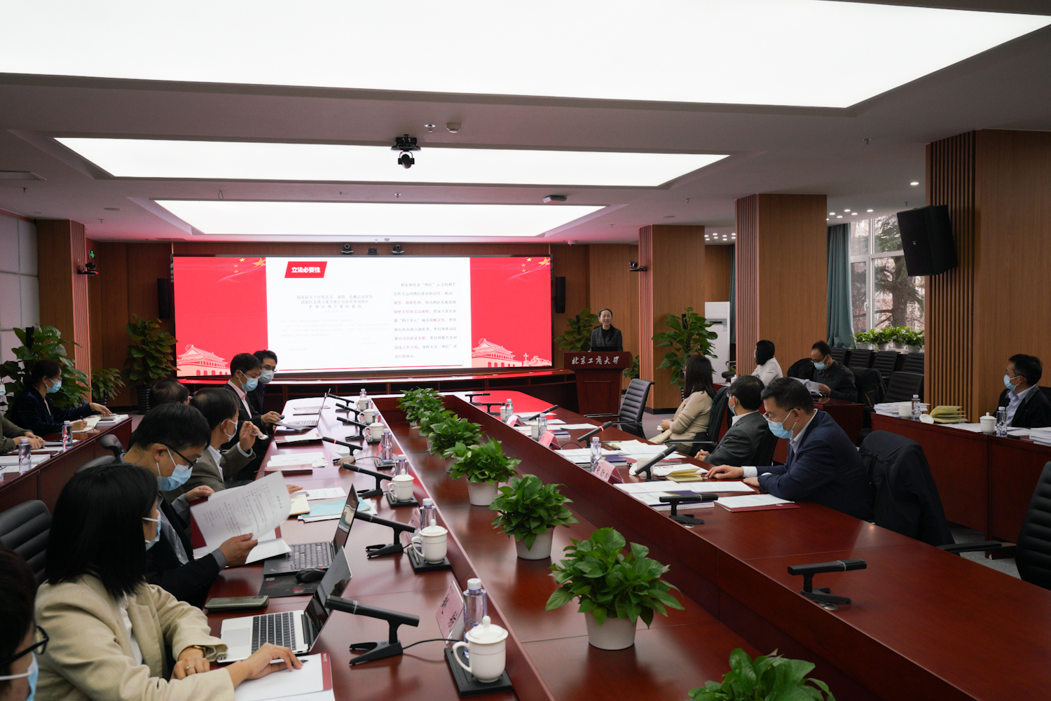 殷勇副市長肯定了學校在服務“兩區(qū)”體制機制改革所作出的貢獻,圍繞三個維度定位“兩區(qū)”建設、 “兩區(qū)”立法特點、法定機構實體三個方面闡述了“兩區(qū)”建設的舉措及思路,希望學校充分發(fā)揮智庫優(yōu)勢,加快特色發(fā)展、開放發(fā)展,積極謀劃、充分調研推進“兩區(qū)”建設,以首善標準全面推進高水平研究型大學建設,為北京“兩區(qū)”建設貢獻北工商力量。