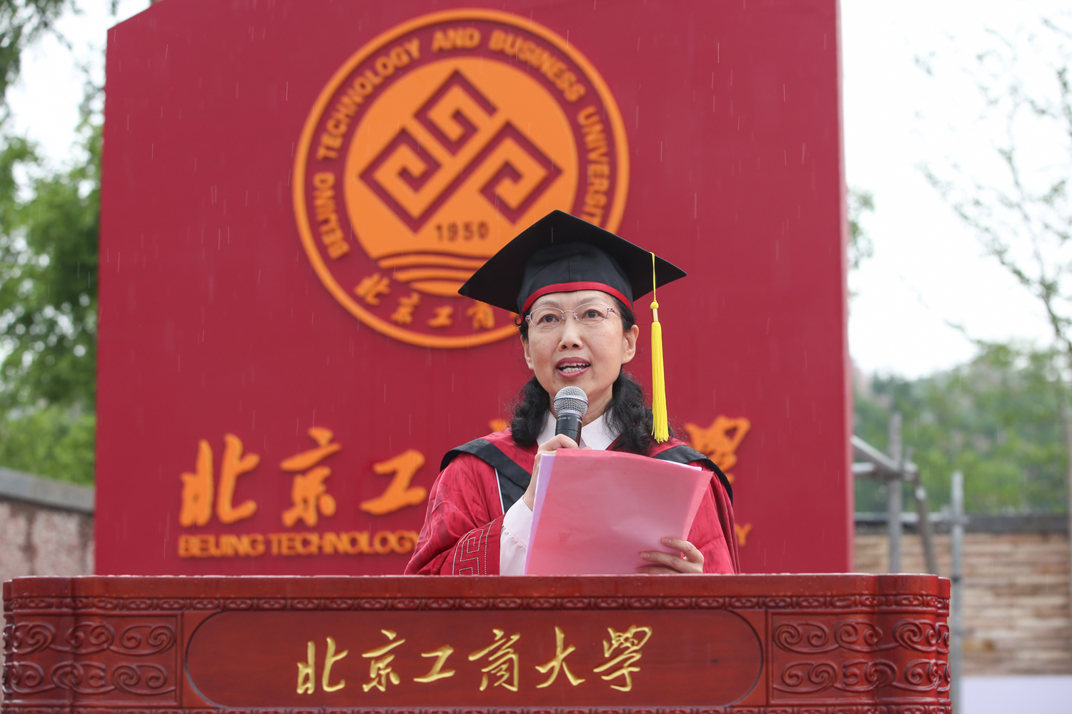 黨委常委、副校長鄭文紅宣讀《北京工商大學關于2021屆本科生畢業及學士學位授予的決定》。