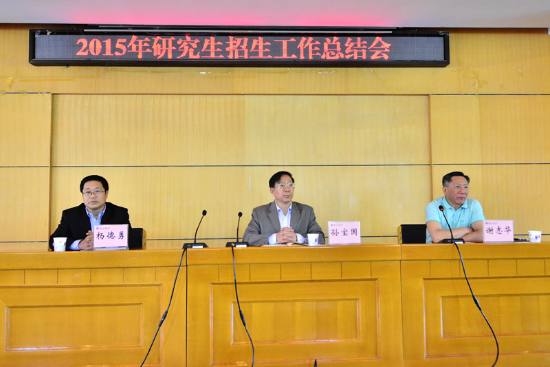 孫寶國校長肯定了2015年招生工作及研究生招生二級管理制度改革,分析了研究生招生形勢變化的原因,強調了研究生招生問題的本質仍然是學科建設問題,是研究生培養(yǎng)質量問題。他指出,學校已經制訂了一系列研究生獎勵政策,旨在提高生源質量,吸引更多優(yōu)秀生源報考我校。他提出,各學科應積極主動適應形勢變化,增強生源質量意識、競爭意識和緊迫感,加大宣傳力度;接收推免生權力要下放,提高招收推免生的比例,爭取在2016年推免生占招生人數(shù)的比例達到一個新的臺階;要開拓留學生生源市場,繼續(xù)擴大碩士留學生的招生規(guī)模。