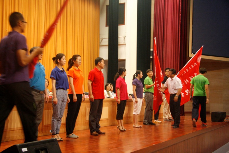 隨后,由我校黨委副書記張德玉為各實踐分團授旗。