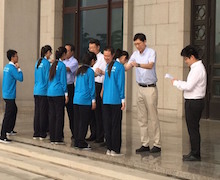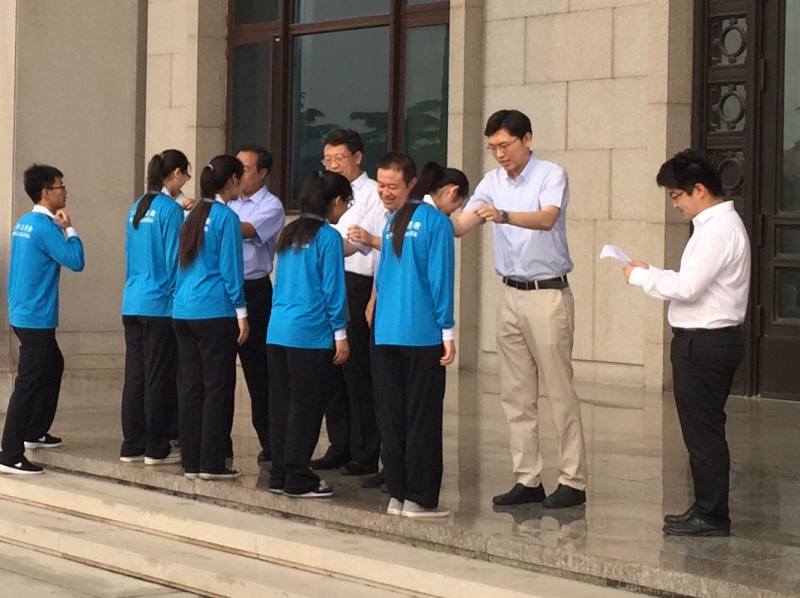 7月22日清晨六點半,我校45名志愿者抵達毛主席紀念堂東門,整齊列隊參加2015年毛主席紀念堂志愿服務項目上崗儀式,我校承擔第八批次的志愿服務。毛主席紀念堂志愿服務項目為團中央重點志愿服務項目和團市委品牌項目。團市委機關黨委書記、市志愿服務指導中心主任郭新保,毛主席紀念堂管理局接待處處長馬恒祥,市志愿服務指導中心副主任王嬴,團市委大學部副部長佟立成,我校團委書記呂良出席了此次上崗儀式。
