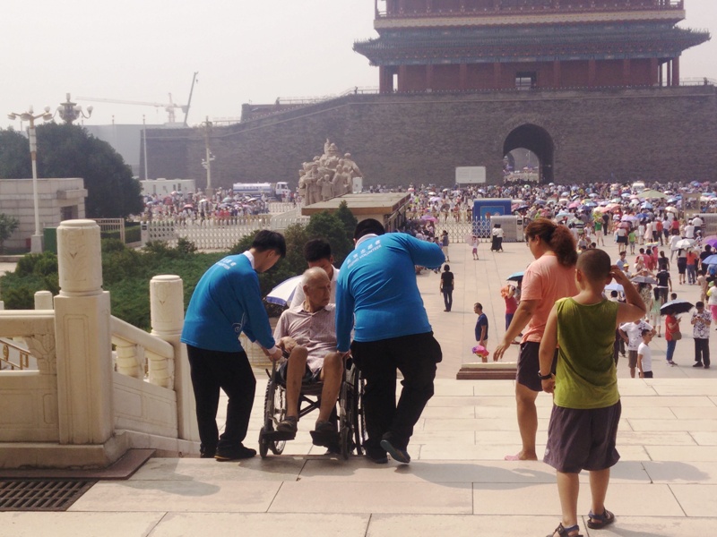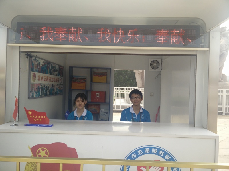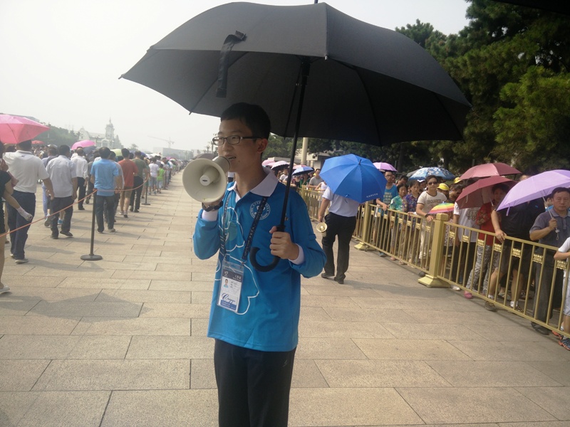 第一天上崗,雖然天氣有些燥熱,志愿者仍堅持以飽滿的精神狀態(tài)堅守崗位,圓滿完成了本崗位的工作。前來瞻仰毛主席紀念堂的群眾有數(shù)萬人之多,外圍引導崗的11位同學配合紀念堂工作人員引導瞻仰群眾有序排隊、等候、瞻仰,維護瞻仰隊伍的良好秩序,宣傳瞻仰參觀注意事項,耐心解答瞻仰群眾相關問題,經(jīng)過志愿者的努力,排隊隊伍更加有序前進。扶老助殘崗的志愿者們協(xié)助老年人、行動不便人士、殘障人士進出紀念堂,志愿者們雖然很辛苦,但也感覺到了助人為樂的幸福。獻花臺引導崗的志愿者們引導瞻仰群眾有序獻花,維護秩序,耐心提醒大家“不要拍照,不要大聲說話,給主席最大的尊重”,及時整理獻花臺,營造了瞻仰現(xiàn)場莊重、肅穆的氛圍。每一個崗位上的同學都十分用心的對待每一位瞻仰群眾。