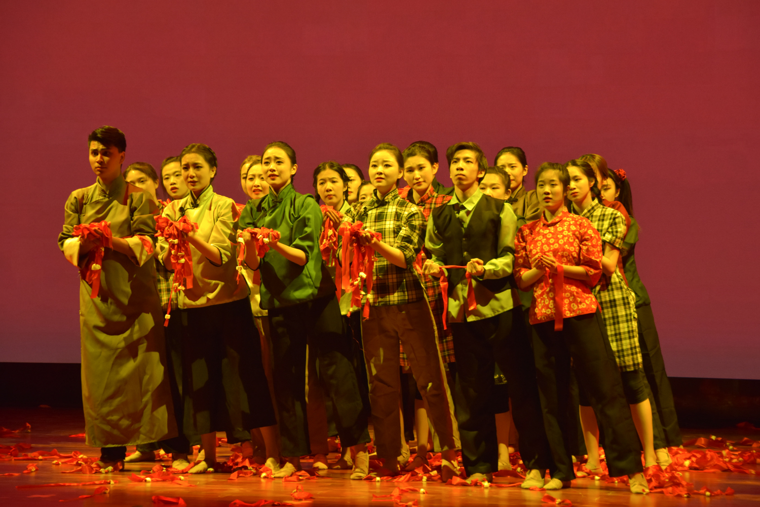 為紀念“一二·九”運動86周年,我校師生自編自導自演了舞蹈《紅船》,演繹了革命先烈為追尋真理拋頭顱、灑熱血的艱辛探索,表現了共產黨員們頑強抗爭的精神和大無畏的英雄氣概。舞臺上的一根根紅綢像是黨旗上的一針一線,是光明、是希望、是不滅的星星之火,是北工商學子對信仰的生動詮釋。