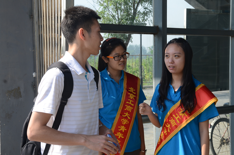 在研究生迎新現場,學校為每一位新生贈予一枚印有“北京工商大學”字樣的胸章,作為人生之路新起航的象征。在顯著位置,設立了咨詢臺、后勤管理處迎新服務點和家長休息區,為新生及家長們提供更加人性化和便利的服務。值得一提的是,今年學校推出了“新生迎新”舉措,部分2015級的新入學研究生作為志愿者加入迎新工作。在新生志愿者中,有很多本科就在我校就讀的同學,這批特殊的“新生”憑借自己四年的經驗幫助新同學熟悉校園環境。“我們是在暑假就向校園會提交了簡歷,通過層層選拔作為志愿者出現在迎新現場,這種入學方式也算是我人生一次新的體驗。”商研1522班的楊昊琳同學如是說。