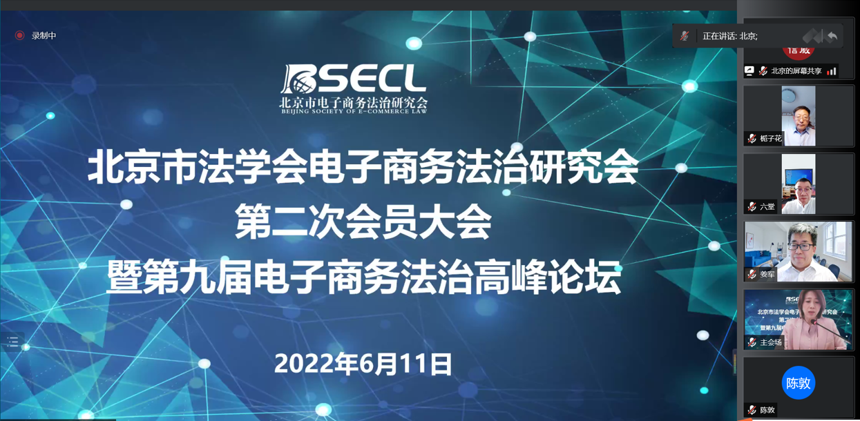 6月11日,由北京市法學(xué)會電子商務(wù)法治研究會主辦,我校法學(xué)院等單位承辦的北京市法學(xué)會電子商務(wù)法治研究會第二次會員大會暨第九屆電子商務(wù)法治高峰論壇舉辦。北京市法學(xué)會黨組書記、專職副會長蕭有茂,我校副校長龔六堂,國家市場監(jiān)管總局網(wǎng)監(jiān)司原副司長韋犁,中國商法學(xué)研究會會長、中國政法大學(xué)教授趙旭東,中國市場監(jiān)管報社黨委副書記張建出席會議并致辭。來自北京大學(xué)、清華大學(xué)、北京工商大學(xué)、北京市法學(xué)會、北京互聯(lián)網(wǎng)法院、大型電商平臺企業(yè)等四十多家單位160多位電子商務(wù)領(lǐng)域?qū)<覍W(xué)者和研究會理事、會員參加會議。