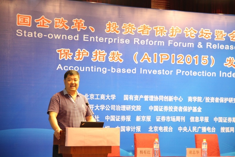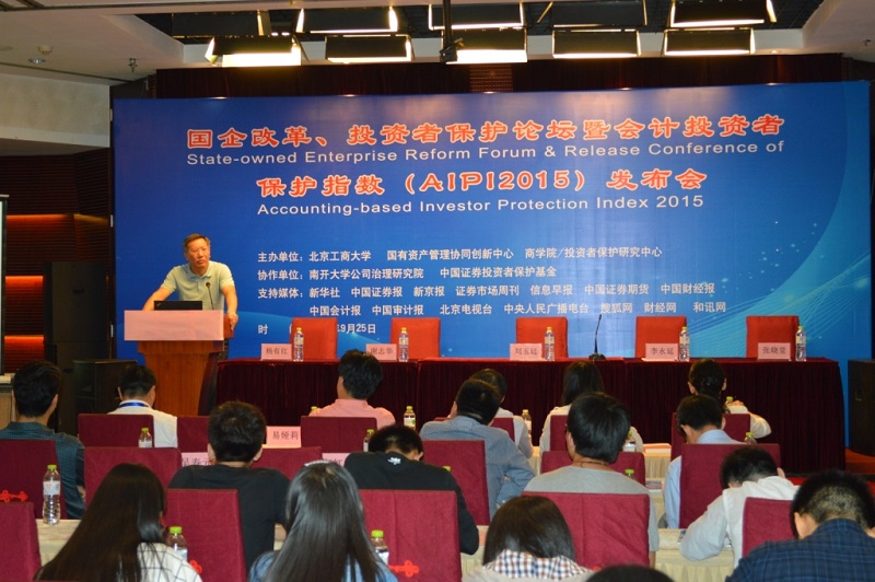 9月25日,我校召開中國上市公司投資者保護論壇暨會計投資者保護指數(AIPI2015)發布會,第六次發布該指數。財政部會計司、企業司原司長劉玉廷,中國企業財務管理協會副會長李永延,中國社會科學院財經戰略研究院院長高培勇,我校副校長謝志華出席發布會并作主題演講。《中國證券報》、《會計研究》等在京媒體及專業期刊、上市公司及投資機構代表、在京高校和科研機構代表以及商學院部分教師和學生共計100余人參加了發布會。發布會由科技處處長楊有紅主持。