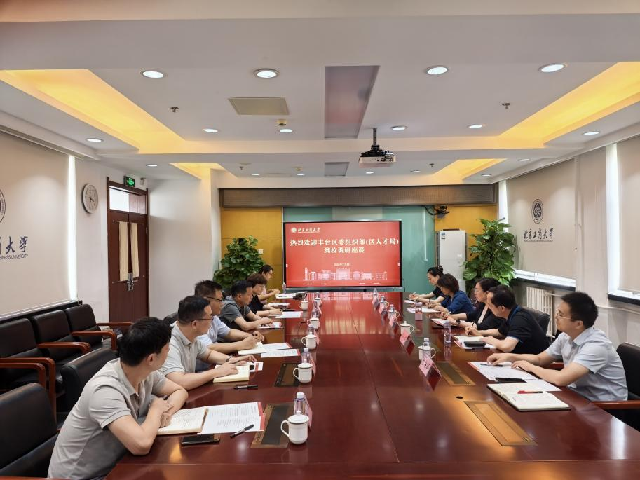 7月8日,北京市豐臺(tái)區(qū)委常委、組織部部長(zhǎng)牟曉春一行到我校阜成路校區(qū)調(diào)研交流,聚焦深化校地合作、共育人才、推動(dòng)產(chǎn)學(xué)研深度融合。學(xué)校黨委常委、副校長(zhǎng)寇紅江陪同調(diào)研并主持座談。