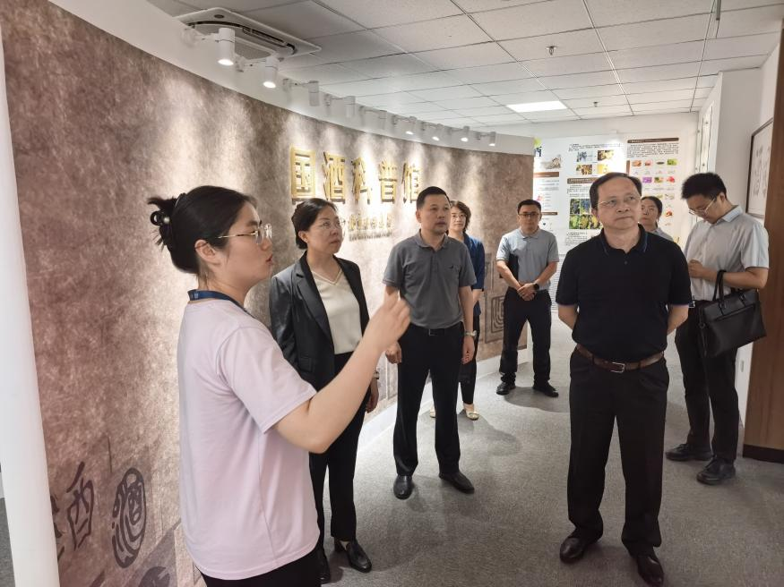 會(huì)前,牟曉春一行實(shí)地考察了國(guó)酒研究院,深入了解食品學(xué)科專業(yè)人才培養(yǎng)和科研成果轉(zhuǎn)化情況。