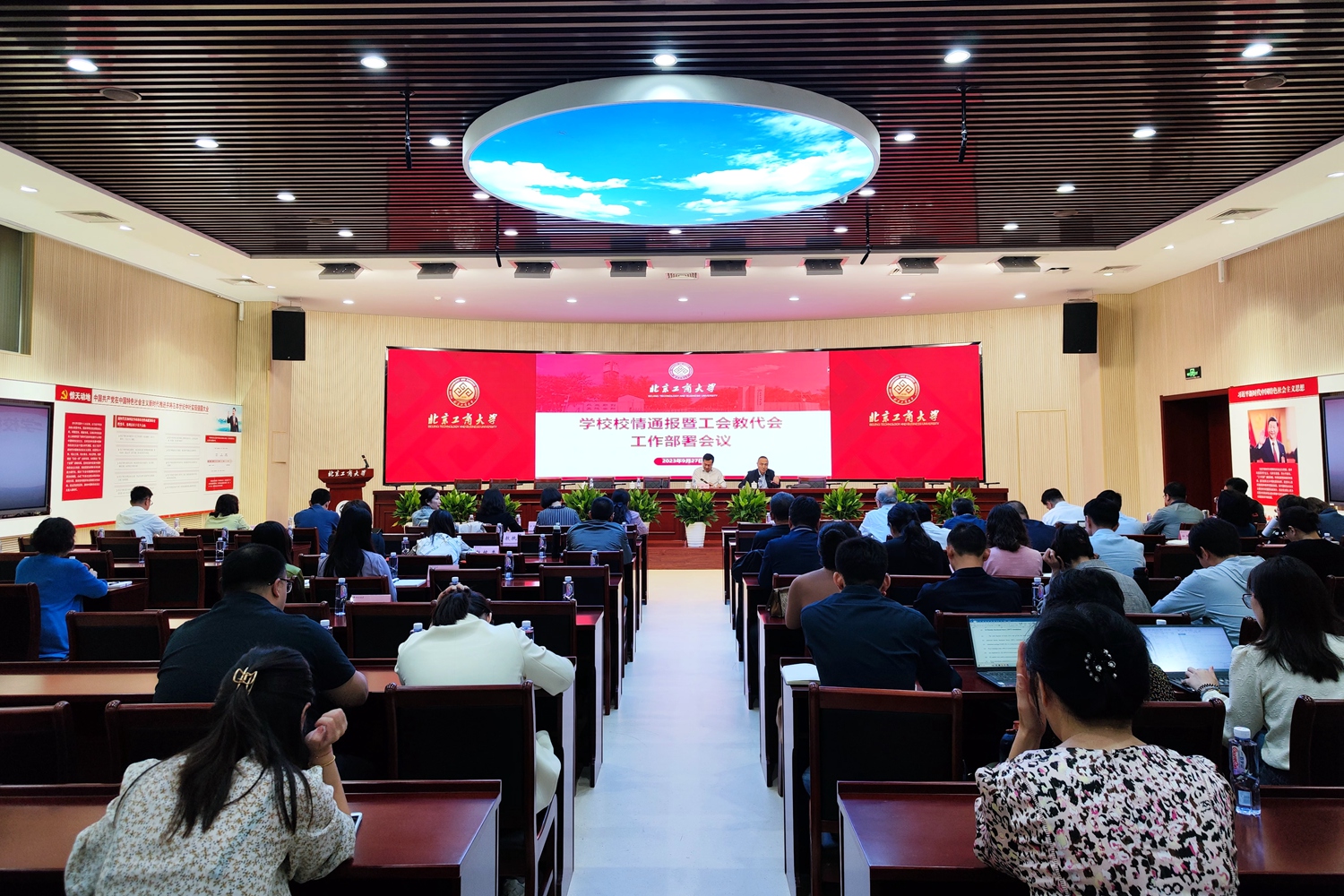 會(huì)上,鄭文紅對(duì)近期學(xué)校情況進(jìn)行通報(bào)。他談到,學(xué)校通過市屬高校分類發(fā)展評(píng)估,正式確定為北京市重點(diǎn)建設(shè)的高水平研究型大學(xué)。在學(xué)校大力推進(jìn)高水平研究型大學(xué)建設(shè)過程中,當(dāng)前有三項(xiàng)重要改革:一是把辦學(xué)主體轉(zhuǎn)移至良鄉(xiāng)主校區(qū),教職工在良鄉(xiāng)主校區(qū)辦公。學(xué)校將加快改造建設(shè),以更好滿足教職工辦公和生活需求。二是完成學(xué)校機(jī)構(gòu)設(shè)置調(diào)整,他闡釋了在新時(shí)代首都高質(zhì)量發(fā)展和學(xué)校建設(shè)高水平研究型大學(xué)的新階段,做好這項(xiàng)工作的現(xiàn)實(shí)需要和重要意義。三是不斷完善后勤社會(huì)化改革。在廣泛開展社會(huì)調(diào)研后,公共事務(wù)處借鑒兄弟院校成熟經(jīng)驗(yàn),引進(jìn)第三方服務(wù),采用彩虹巴士社會(huì)化購買服務(wù),為師生的通勤提供保障。他還分析了國際國內(nèi)形勢,在當(dāng)前國家教育高質(zhì)量發(fā)展時(shí)期,學(xué)校要大力加強(qiáng)學(xué)科建設(shè),加強(qiáng)創(chuàng)新人才培養(yǎng),加快促進(jìn)高水平研究型大學(xué)的建設(shè)。希望各級(jí)干部和廣大教職工提高站位,征集各方意見建議,凝聚智慧,達(dá)成共識(shí),共同為學(xué)校發(fā)展貢獻(xiàn)力量。