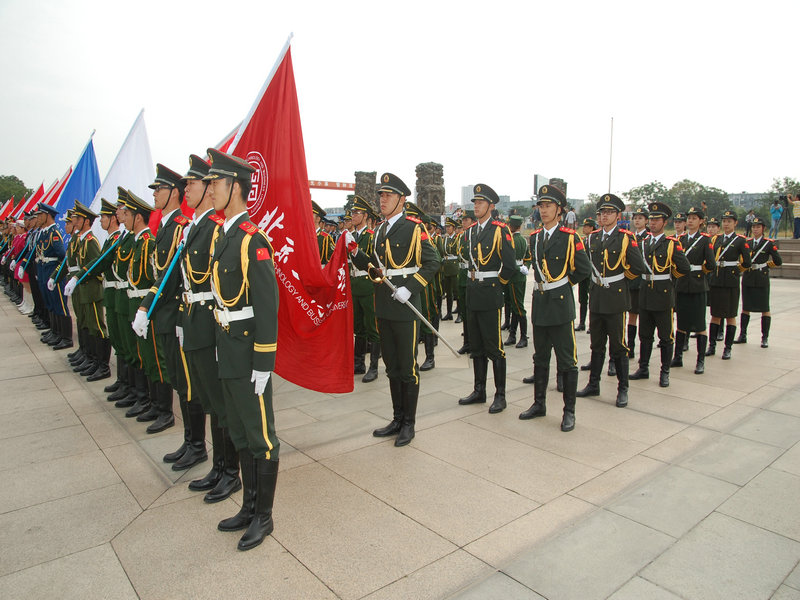 此次活動恰逢抗日戰爭暨世界反法西斯戰爭勝利70周年以及建國66周年,全國各高校、尤其京內高校都非常重視,并進行了充分的準備。我校國旗護衛隊剛剛在9月北京高校國旗儀仗比賽中榮獲二等獎的歷史最好成績后,隊員們以更加飽滿的熱情投入賽前準備。在不耽誤正常上課的前提下,護衛隊充分利用每天早晨6:00~7:30、晚上9:00~10:30和周末的時間訓練,反復強化每一個流程,細摳每一個動作。有的隊員除了正常訓練時間外還會對著鏡子加練,直到動作規范為止。經過連續集訓,大部分隊員腳上磨出了血泡,但為了全隊的榮譽,沒有一名隊員缺席訓練。正像護衛隊隊長所說的,在國旗護衛隊中,堅持就是一種幸福!