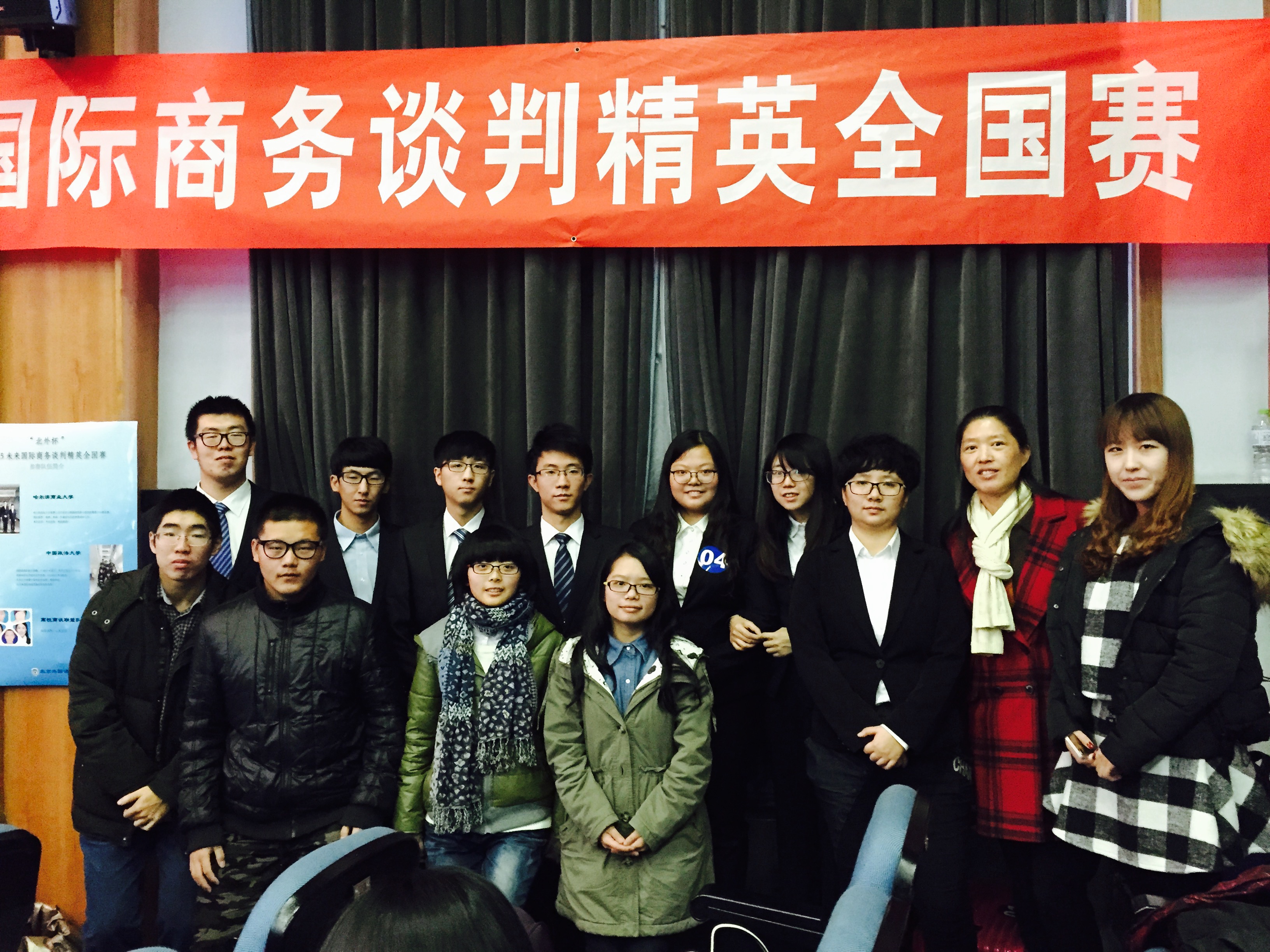 11月21日至22日,在學校教務處和經濟學院的支持下,我校代表隊由經濟學院朱振榮、王茜擔任指導老師,在“北外杯”2015未來國際商務談判精英全國賽中榮獲二等獎,商學院張偉楠、計信學院王璽獲“優秀談判手”稱號,朱振榮獲“優秀指導獎”。