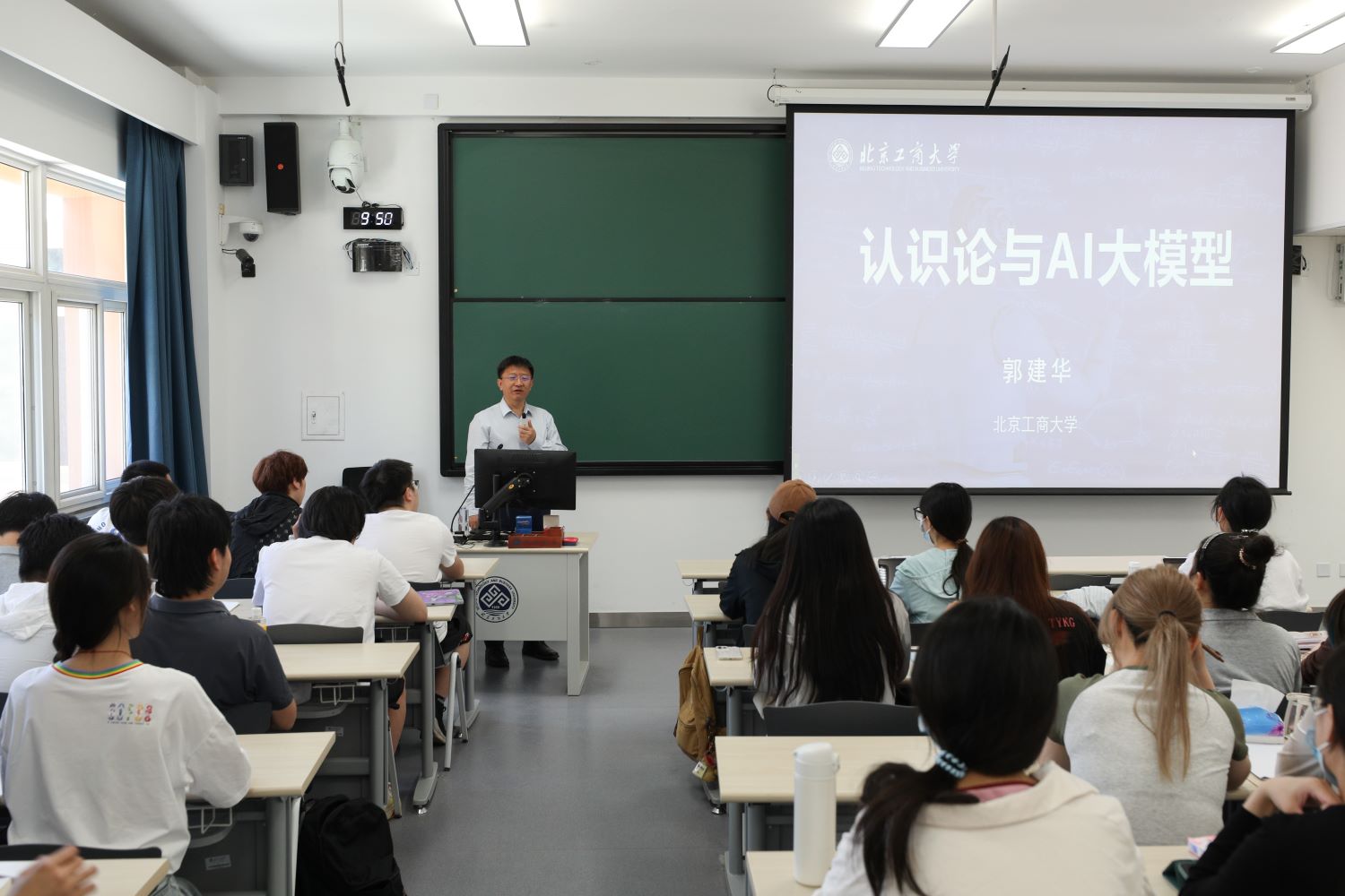 郭建華以 “什么是新時(shí)代?”問題開場(chǎng),提出如何理解馬克思主義中國化時(shí)代化,引導(dǎo)學(xué)生對(duì)時(shí)代發(fā)展和認(rèn)識(shí)論進(jìn)行認(rèn)真深入思考。授課過程中,郭建華從“唯物辯證的認(rèn)識(shí)論”“什么是AI大模型”“大模型帶來的新機(jī)遇”三個(gè)維度對(duì)認(rèn)識(shí)論和新時(shí)代AI大數(shù)據(jù)模型發(fā)展進(jìn)行了詳細(xì)講解。他結(jié)合世界信息化時(shí)代特點(diǎn),深入系統(tǒng)闡述了辯證唯物主義對(duì)認(rèn)識(shí)本質(zhì)的科學(xué)回答,指明認(rèn)識(shí)是主體在實(shí)踐基礎(chǔ)上對(duì)客體的能動(dòng)反映,具有反映性和創(chuàng)造性兩個(gè)基本特征,為新形態(tài)的人工智能奠立認(rèn)識(shí)論基礎(chǔ)。
