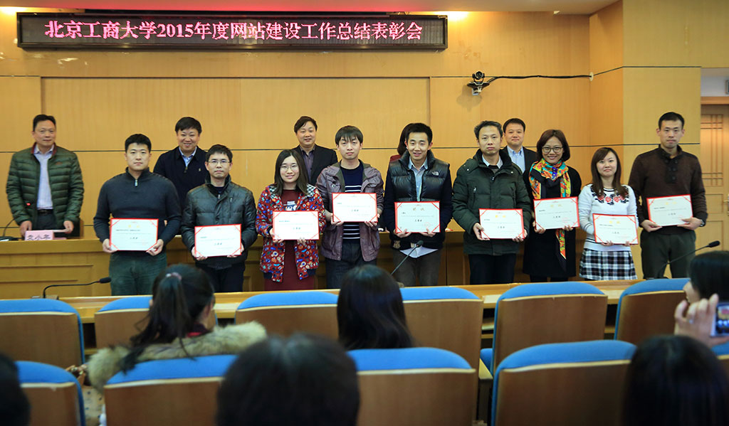 會上宣讀了北京工商大學2015年度二級網站建設的評比結果,同時授予9名網絡信息管理員“2015年度優秀信息員”稱號,以表彰他們在網站建設工作中做出的優異成績,并為受到表彰的部門和個人頒發了獎狀。在頒獎儀式后,方德英副校長宣布教職工云盤正式啟用。