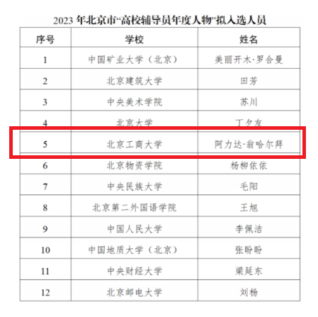 市委教育工委組織主辦的2023年北京市“最美高校輔導員”系列榮譽推選展示活動順利舉行。我校少數民族專職輔導員阿力達·翁哈爾拜獲北京市“高校輔導員年度人物”榮譽稱號。北京市“最美高校輔導員”系列榮譽推選展示活動是面向北京高校輔導員舉辦的重要評選活動,旨在全面實施“時代新人鑄魂工程”,選樹新時代北京高校輔導員先進榜樣。