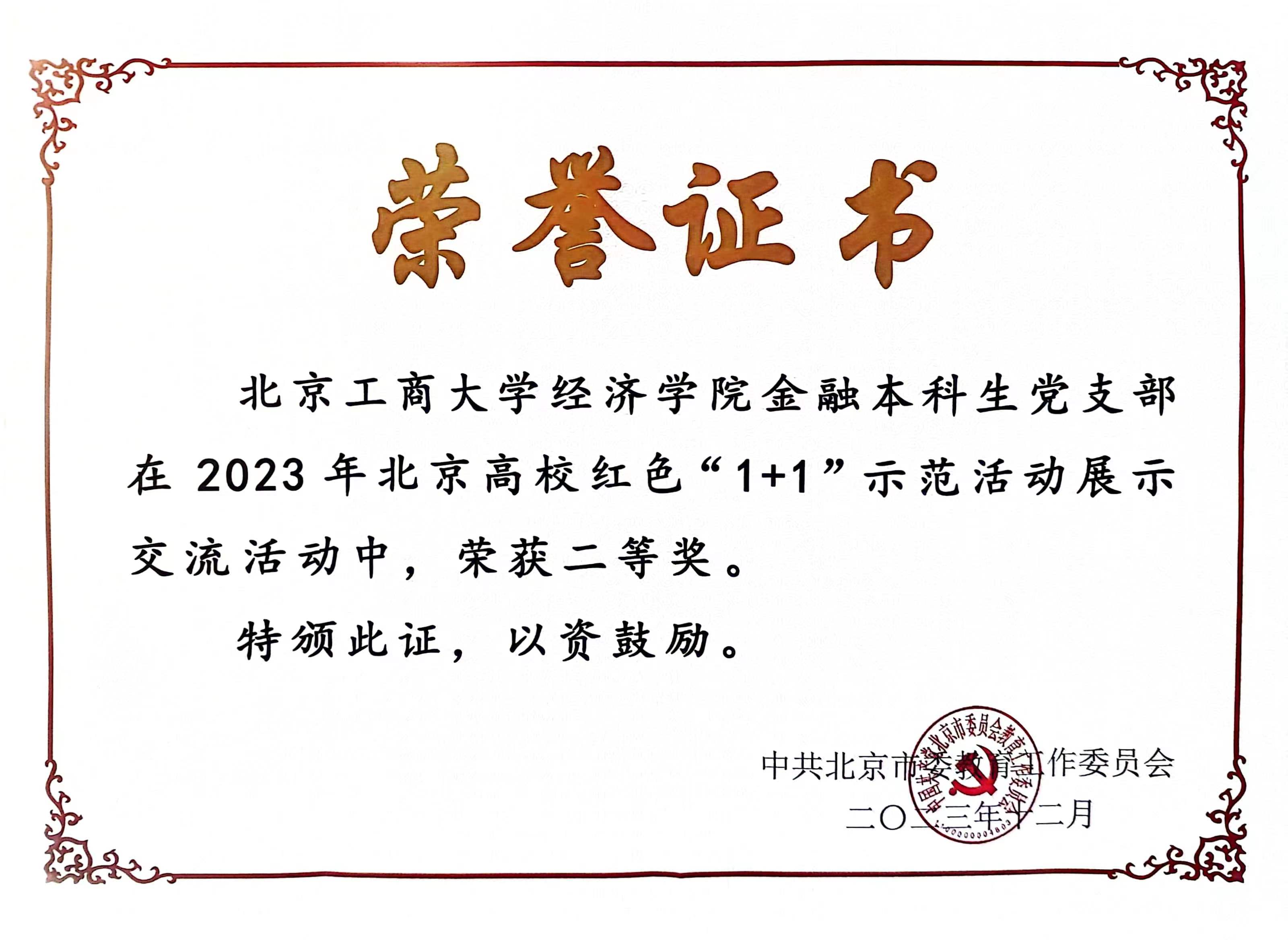 在北京高校學生工作學會主辦的2023年北京高校十佳班集體評選會中,經濟學院金融203班從來自北京市高校的257個班級中脫穎而出,成功入圍25個班級的終審,最終榮獲北京高校“優秀班集體”稱號。