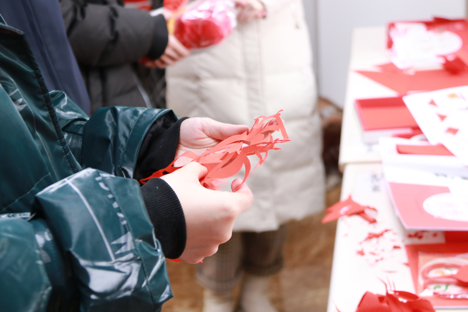 在師生寫福字環(huán)節(jié),馬飛為同學(xué)們指點(diǎn)寫書法的要點(diǎn),師生們?cè)谙矐c的灑金紙上寫下飽含深情的福字和心儀的對(duì)聯(lián),剪窗花的同學(xué)們也把自己的新年愿望剪在了紅紙上,李中奇副書記為參與的同學(xué)們送上精心準(zhǔn)備的獎(jiǎng)品。