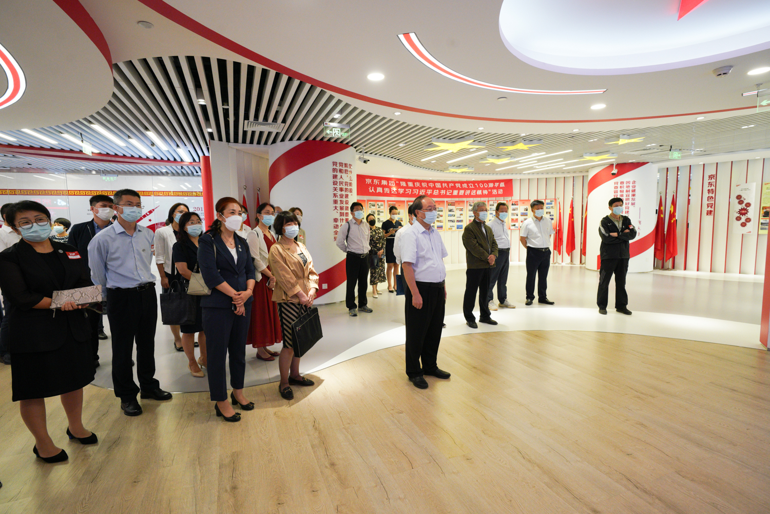 學校理論學習中心組成員(擴大)一行實地參觀了京東集團總部,先后參觀了黨建展廳、文化展廳、總部沙盤、京東科技等,詳細了解了京東集團產業發展歷程、主要業務板塊、物流體系運營模式等內容。通過現場解說、實景呈現和視頻播放等多種形式,參觀人員對京東電商物流倉儲配送的新技術應用、消費大數據的實時動態捕捉與分析、企業文化融入社會責任的品牌塑造、黨的建設在企業發展壯大中的引領作用等有了更清晰的認知和感悟,對中國經濟發展和民營資本的作用有了更直觀的體驗。