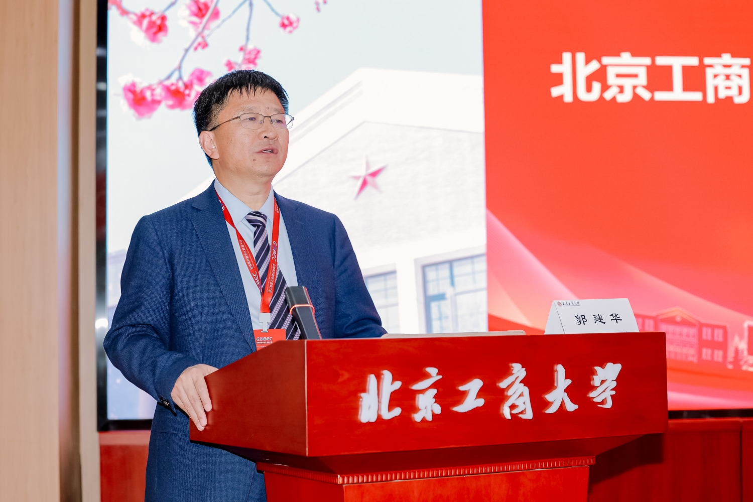 學校黨委副書記、校長郭建華致辭,他介紹了學校的基本情況和學科發(fā)展現(xiàn)狀,重點展示了我校發(fā)展特色、學科優(yōu)勢。他強調(diào),數(shù)字經(jīng)濟日益成為全球經(jīng)濟發(fā)展的新動能,學校堅持“商科做強、工科做精、工商融合、雙輪驅(qū)動”的發(fā)展思路,以創(chuàng)新為驅(qū)動,推進統(tǒng)計學與商科、食品、化妝品交叉融合,培養(yǎng)與戰(zhàn)略性新興產(chǎn)業(yè)、未來產(chǎn)業(yè)等發(fā)展需求相適應的統(tǒng)計學復合型人才,為經(jīng)濟社會發(fā)展提供人才和智力支持。本次大會對學校統(tǒng)計學專業(yè)建設(shè)、學位點建設(shè)具有重要指導意義,希望各位專家學者多提寶貴意見,繼續(xù)支持學校相關(guān)學科專業(yè)建設(shè)和教育教學改革。