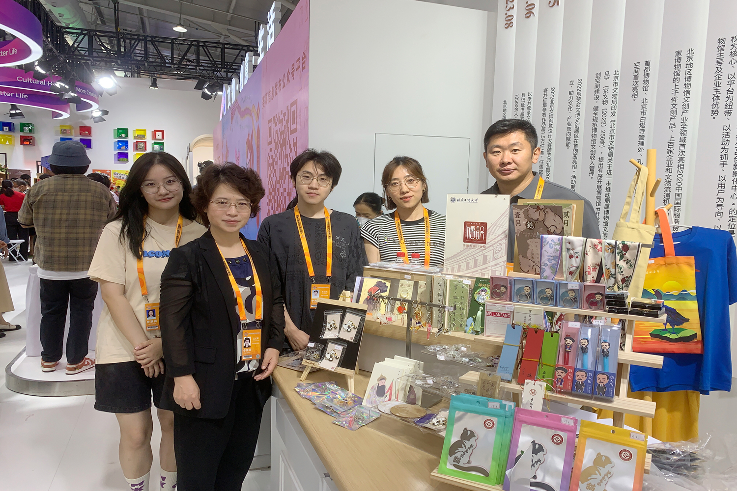 2022年以來,依托北京工商大學與北京市文物局合作成立的“博物館之城研究院”,傳媒與設計學院與北京市文博機構持續展開多項合作,貫徹落實學校“服務好首都”的指導原則,堅持發揮學科特色,為文博工作講好中國故事和北京故事營造良好氛圍。學院連續兩年在中國國際服貿會文博文創展區展出文創產品并組織文化體驗活動,為推進北京博物館之城建設呈現新氣象,積極貢獻北工商力量。