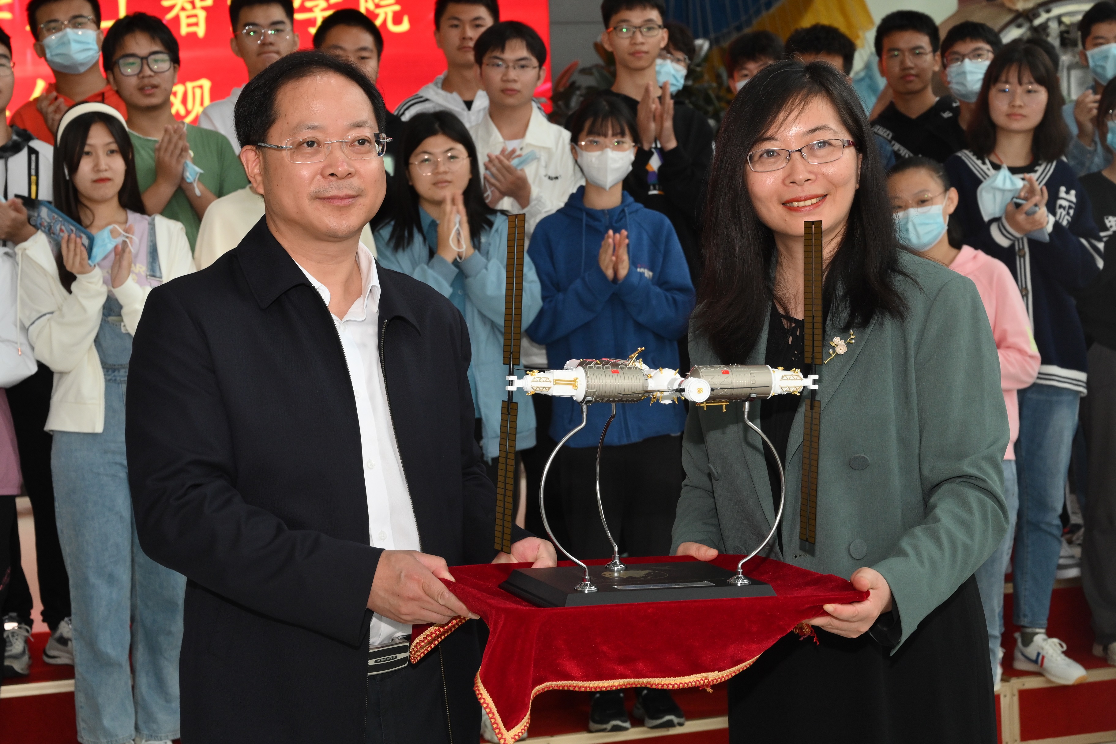 戚發軔院士向學生代表贈送了親筆題寫的寄語“仰望星空,腳踏實地”和親筆簽名的“空間站——神州十二號載人飛行任務紀念”郵冊,林益明院長向學院贈送神州十二號模型。參加活動的學子們紛紛表示,通過這次參觀,感受到了什么是大國重器、什么是大國利器,明白了學好專業知識的重要作用,更加堅定了愛國主義信念,真切地體會到作為新時代青年人所肩負的建設祖國的艱巨任務。