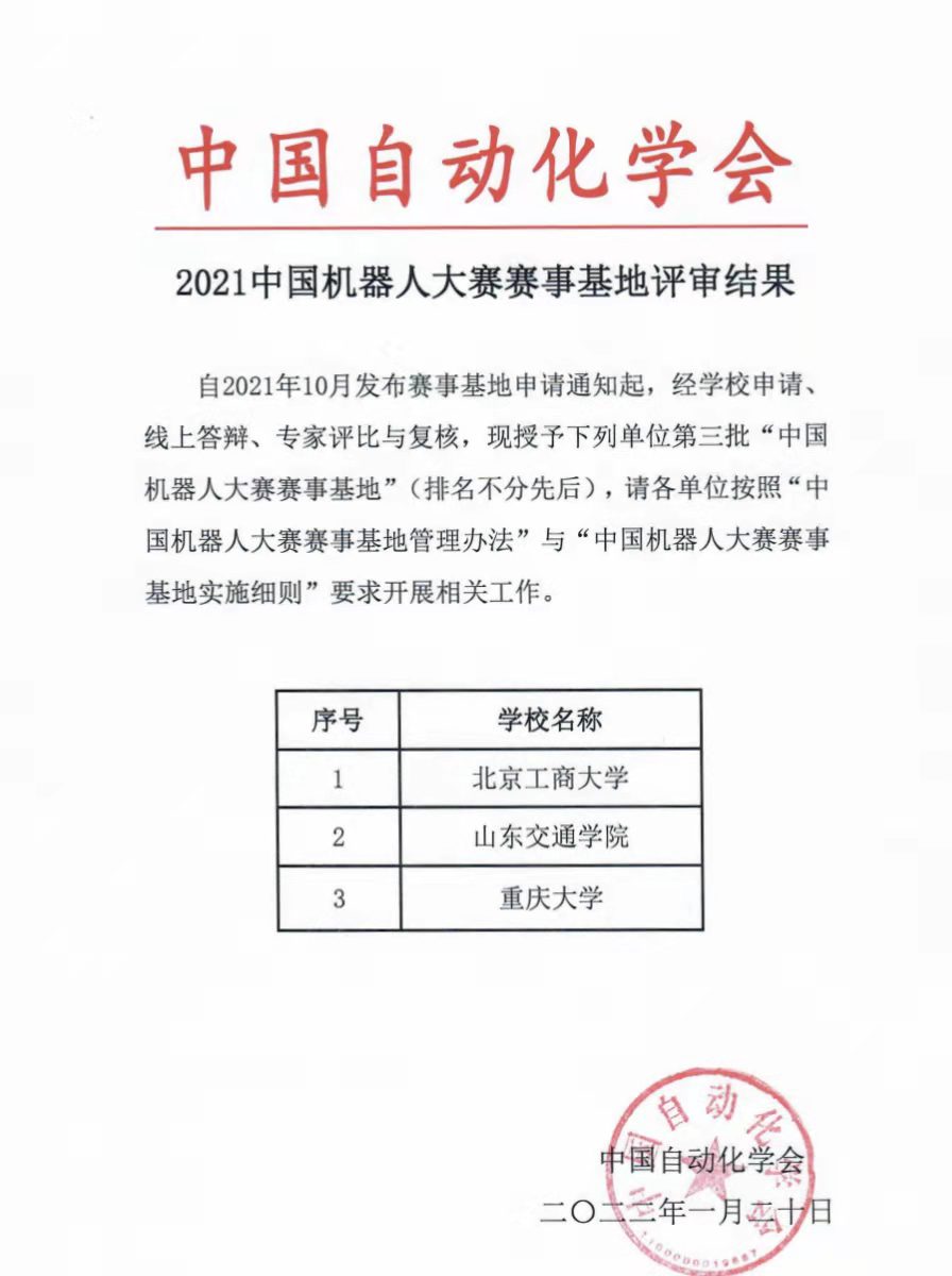 1月21日,中國自動化學會發布了2021中國機器人大賽賽事基地評審結果。人工智能學院在眾多申請單位中脫穎而出,獲批“中國機器人大賽賽事基地”,是該賽事在北京地區高校唯一一所賽事基地。