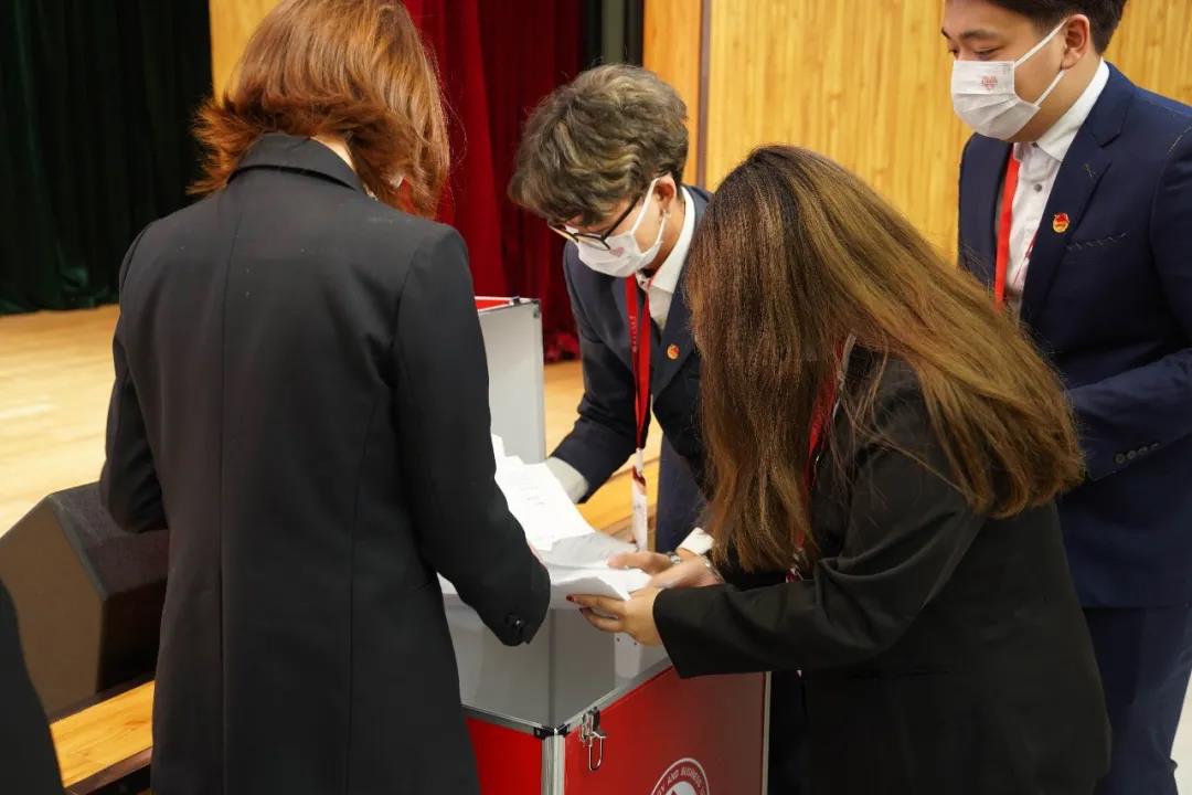 在工作人員帶領下,大會宣讀了《北京工商大學第十一次學生代表大會選舉辦法》,選舉產生了4名第十一屆學生會主席團成員。