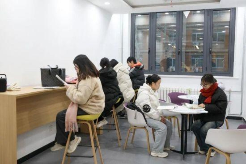 報考控制工程專業的鄭同學說:“我最深刻的感受就是學校的硬件設施,休息區的教室明亮嶄新、溫暖舒適。存包的地方就在休息區樓上,十分便利。”