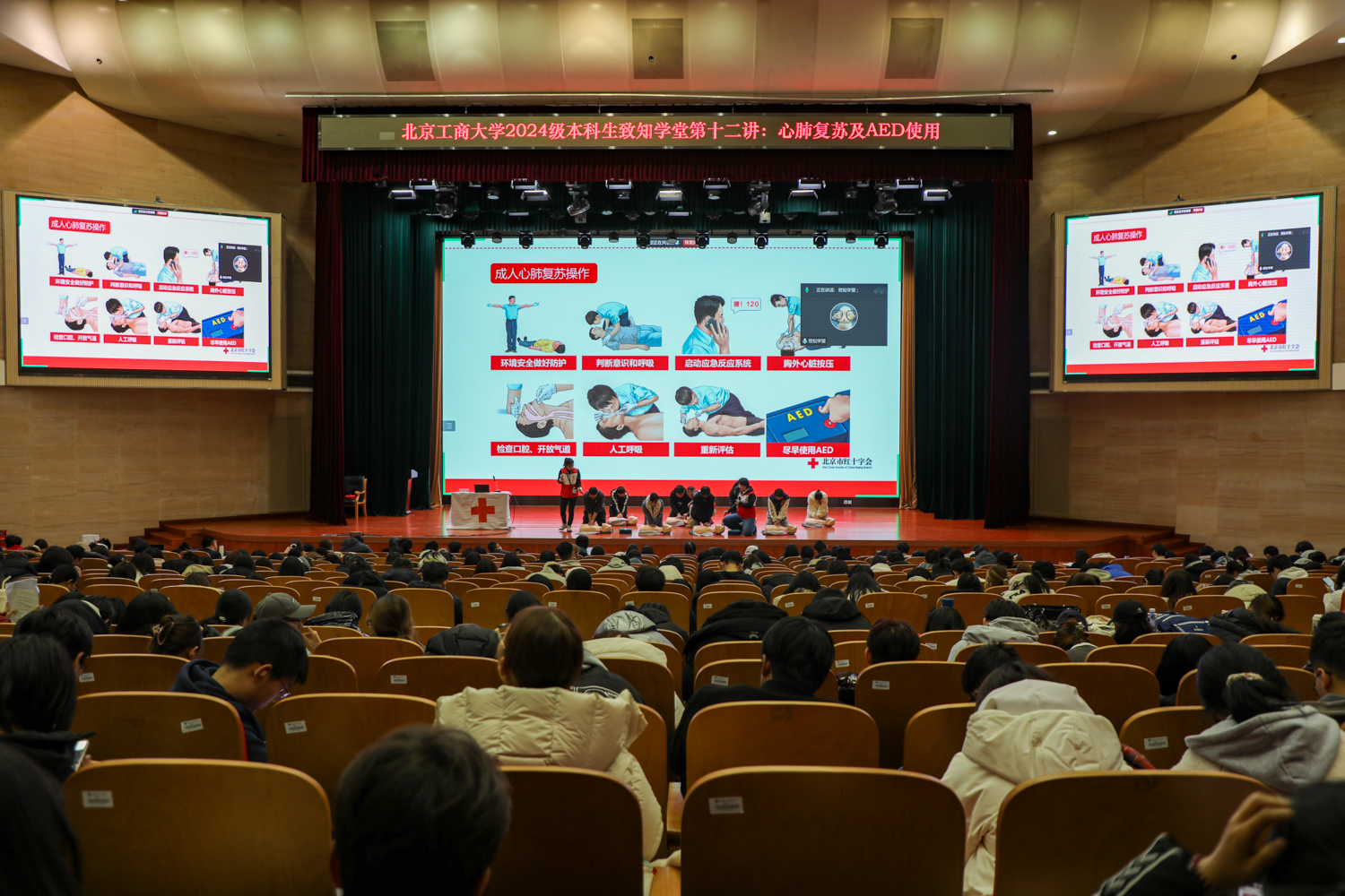 11月26日,北京工商大學(xué)良鄉(xiāng)主校區(qū)開(kāi)展2024致知學(xué)堂系列講座第十二講:心肺復(fù)蘇及AED使用。原解放軍三甲醫(yī)院護(hù)士長(zhǎng)、現(xiàn)北京市紅十字會(huì)應(yīng)急救護(hù)培訓(xùn)講師、心理咨詢師、健康管理師張海英開(kāi)展“守護(hù)校園安全,紅十字‘救’在身邊”為題的講座,帶領(lǐng)同學(xué)們深入學(xué)習(xí)急救的各種方法,了解心肺復(fù)蘇在現(xiàn)實(shí)生活中的運(yùn)用,深化同學(xué)們對(duì)“紅十字會(huì)的認(rèn)識(shí)。