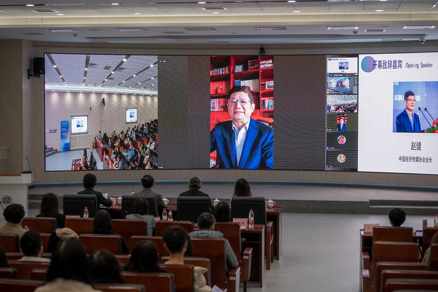 中國人民大學副校長胡百精教授、中國經(jīng)濟傳媒協(xié)會會長趙健、中國新聞史學會應用新聞傳播學研究委員會會長張志安教授也在開幕式致辭中對大會的順利召開表示祝賀。胡百精在致辭中表示,此次研討會是一場將學術研究和人才培養(yǎng)一體融合的會議,研討會將教和研融為一體,兩者兼顧,相得益彰,充分體現(xiàn)了北工商的辦學實力、特色、傳承,以及面向未來進行探索的可貴勇氣,除此之外還提出了構建教與研互通的三個路徑。趙健指出,如今我們處在歷史交匯點上,因此更加需要作為時代“瞭望”的新聞人以精彩的新聞報道來建筑中國輝煌,以中國經(jīng)濟故事,中國經(jīng)濟話語來構建人類經(jīng)濟命運共同體。張志安在開幕式發(fā)表致辭中對大會的召開表示祝賀,并認為鼓勵大學生在學階段學習經(jīng)濟新聞寫作具有非常大的意義,大學生從事經(jīng)濟新聞寫作及報道實踐,在雙重專業(yè)性、認識事情的復雜性、建立更宏觀的格局認識三個層面具有很大價值。