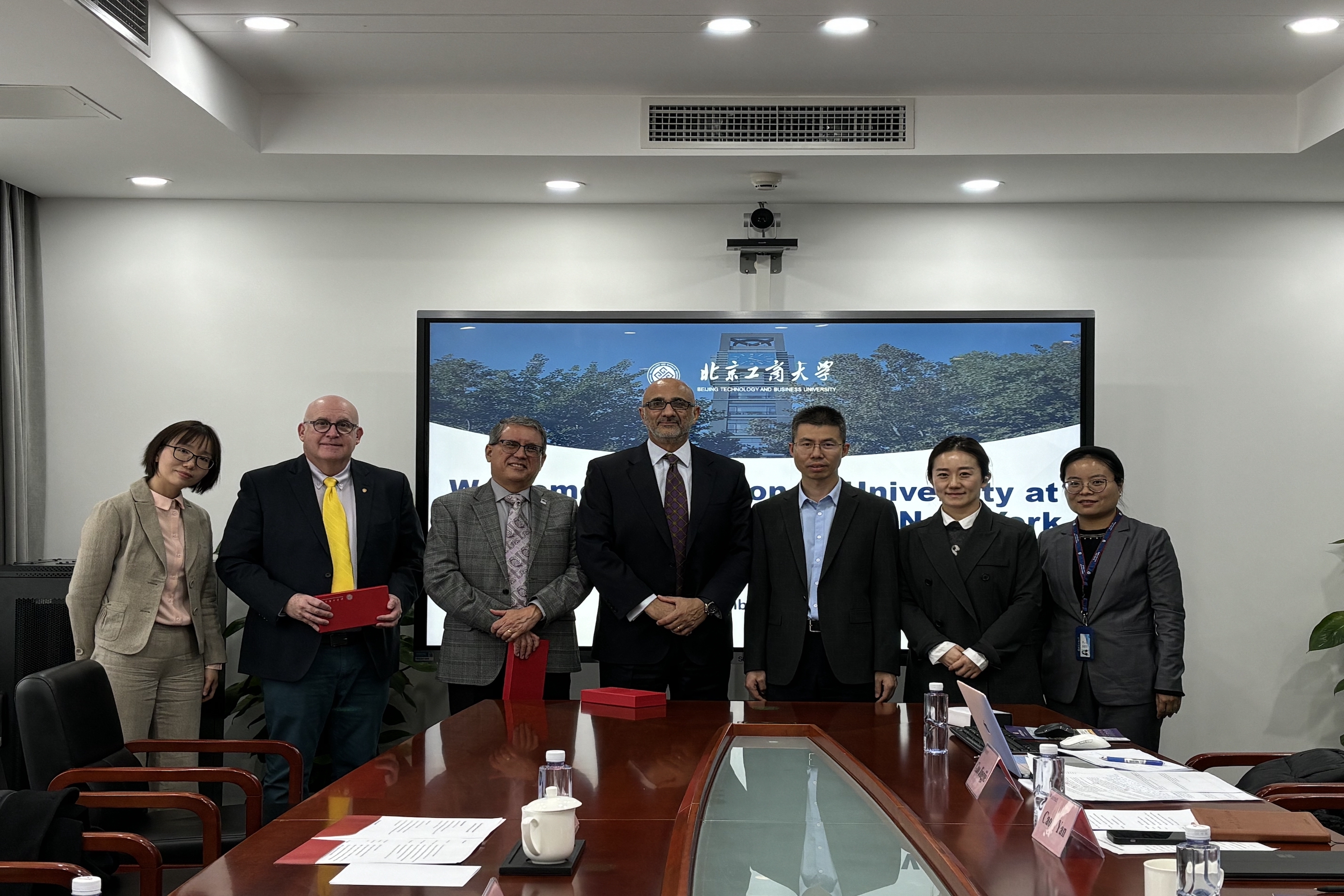 薩奈·法丁對毛新述的熱情接待表示感謝,并介紹了奧爾巴尼大學的國際化發(fā)展目標和戰(zhàn)略。他回顧了今年8月我校代表團訪問奧爾巴尼大學的情景,并表示奧爾巴尼大學非常重視和北京工商大學的合作,希望此次訪問能夠進一步加深雙方的合作基礎,共享兩校優(yōu)勢學科資源共享,在商科、經(jīng)濟、計算機科學、大數(shù)據(jù)等領域開展不同形式的合作與交流,推動兩校的共同發(fā)展。