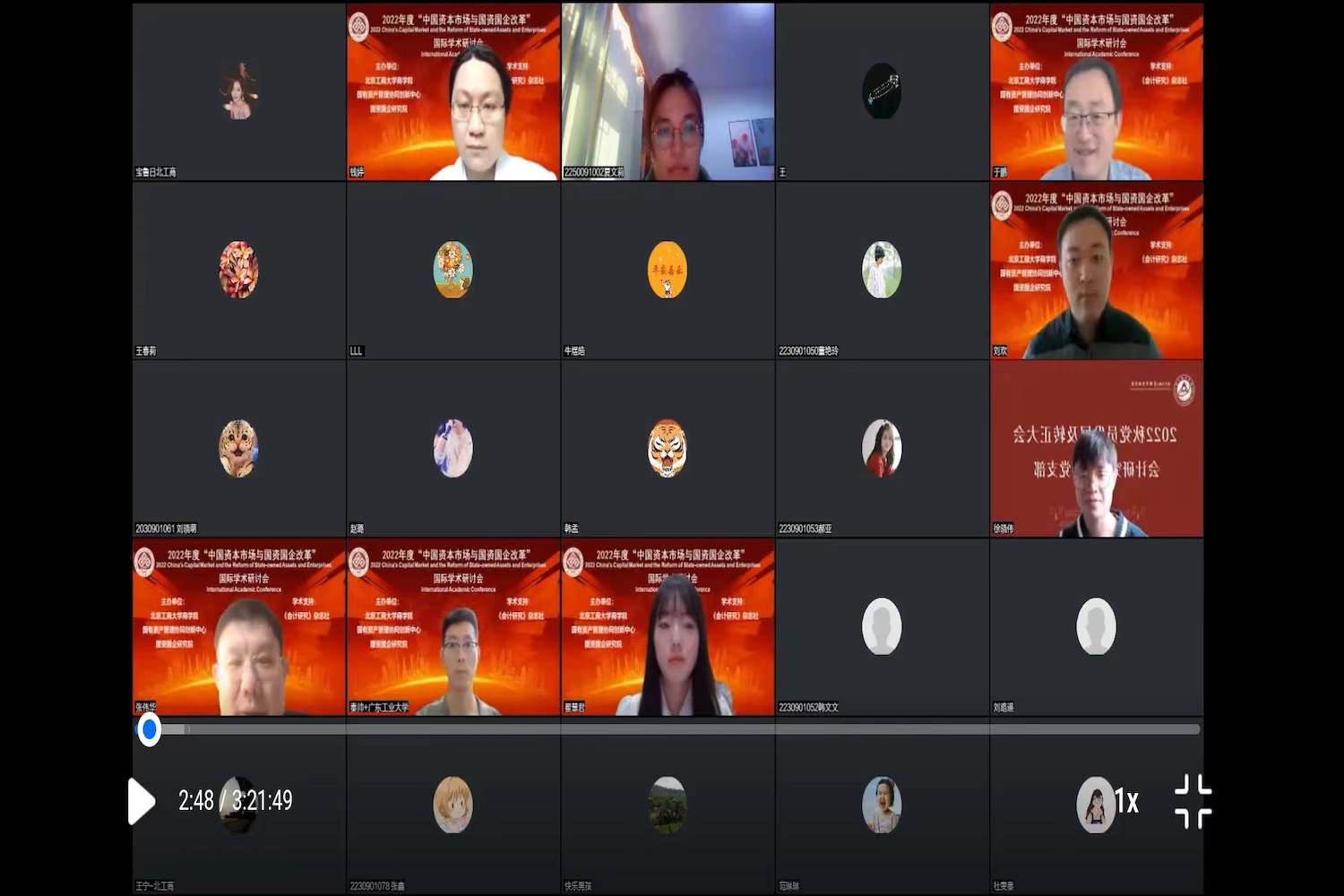 11月26日,第二屆“中國(guó)資本市場(chǎng)與國(guó)資國(guó)企改革”國(guó)際學(xué)術(shù)研討會(huì)采用線上會(huì)議方式召開(kāi)。我校副校長(zhǎng)龔六堂教授出席會(huì)議并致辭。我校原副校長(zhǎng)謝志華教授出席會(huì)議。香港大學(xué)、澳大利亞麥考瑞大學(xué)、香港城市大學(xué)、中國(guó)南方科技大學(xué)、中國(guó)人民大學(xué)、廈門(mén)大學(xué)、復(fù)旦大學(xué)等30余所高校的專家學(xué)者,我校研究生院院長(zhǎng)兼商學(xué)院院長(zhǎng)毛新述教授、商學(xué)院副院長(zhǎng)張偉華教授、商學(xué)院教師和研究生參加了此次會(huì)議。