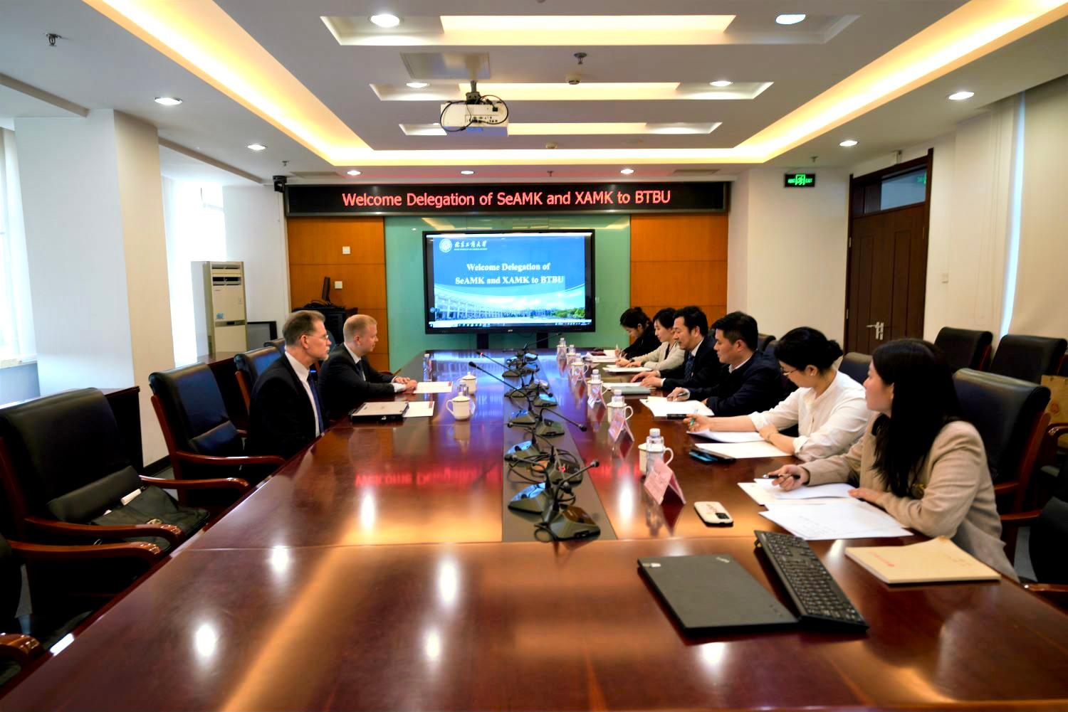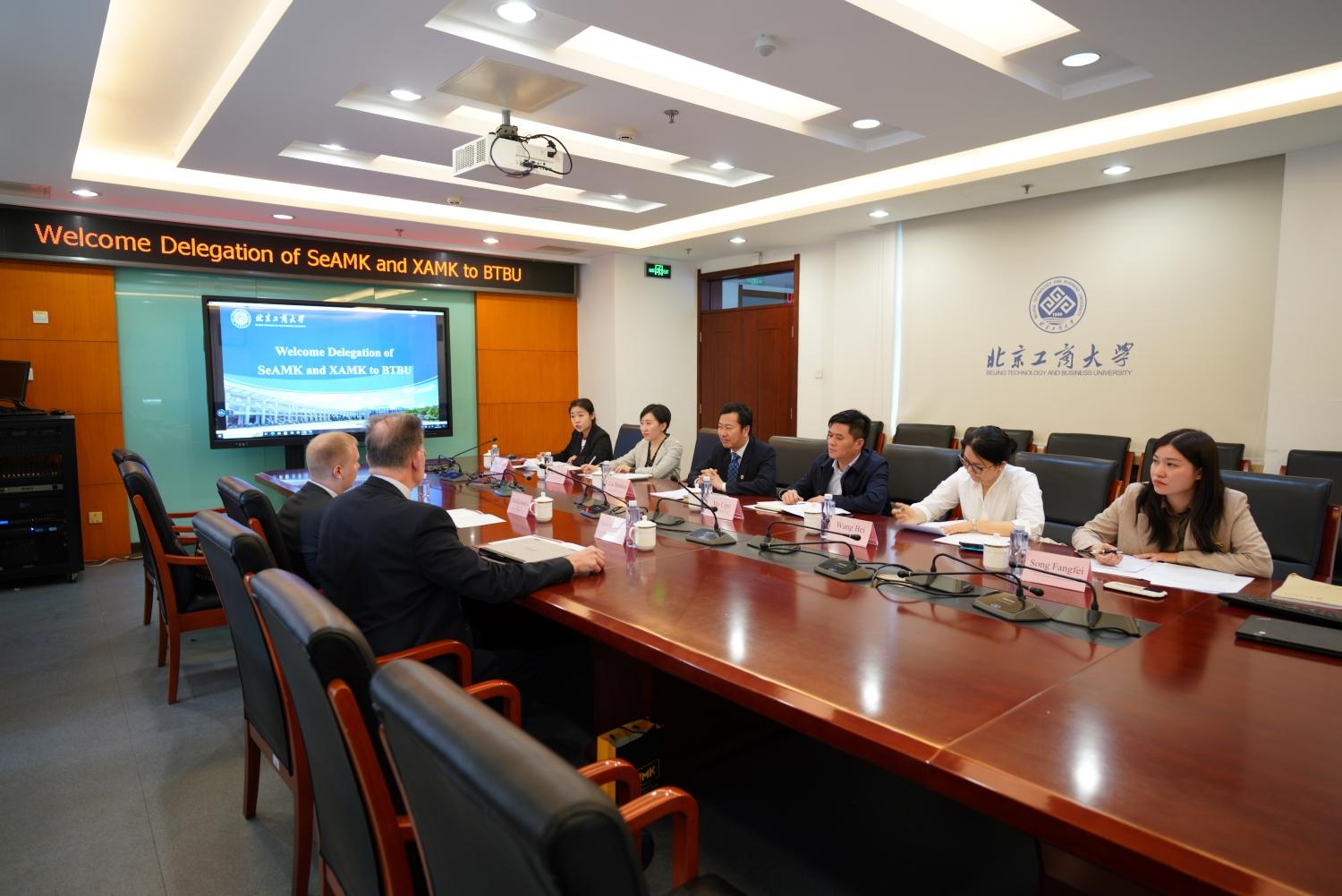 劉敏華對(duì)兩位校長(zhǎng)來(lái)訪表示熱烈歡迎。他簡(jiǎn)要介紹了學(xué)校的發(fā)展歷程,以及近年來(lái)在人才培養(yǎng)、學(xué)科建設(shè)、師資隊(duì)伍、國(guó)際化發(fā)展等方面的情況,強(qiáng)調(diào)學(xué)校正在圍繞商科、輕工和食品優(yōu)勢(shì)方向,推進(jìn)建設(shè)特色鮮明的高水平研究型大學(xué)。同時(shí),他對(duì)芬蘭人民堅(jiān)忍不拔的“西蘇”精神給予高度贊揚(yáng),表示芬蘭高校在研究與創(chuàng)新領(lǐng)域的積極探索值得學(xué)習(xí)。他指出,學(xué)校非常重視國(guó)際交流與合作,將開(kāi)放作為學(xué)校建設(shè)的重要方針,希望通過(guò)此次訪問(wèn),可以增進(jìn)彼此了解,與芬蘭高校搭建起交流與合作的平臺(tái),未來(lái)在人才培養(yǎng)、教師交流等方面開(kāi)展項(xiàng)目,取得實(shí)質(zhì)性的合作成果。
