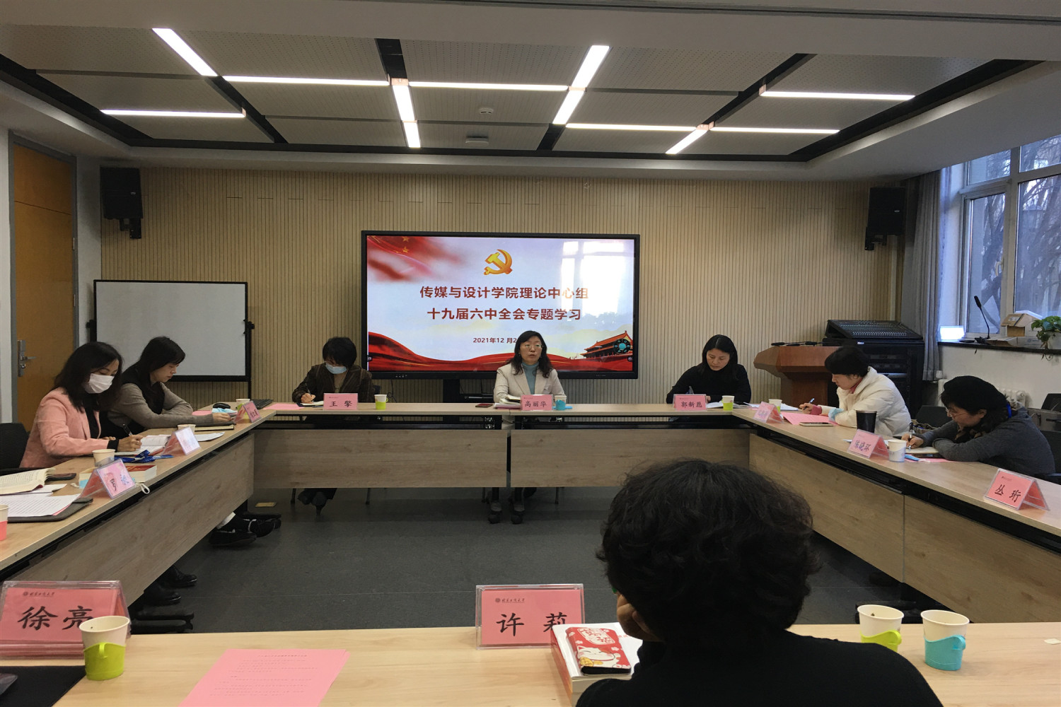 12月24日,傳媒與設計學院黨委理論學習中心組在良鄉主校區召開了十九屆六中全會精神專題學習會。學校黨史學習教育第五巡回指導組成員郭新愿、紀彬彬到會指導。學院理論學習中心組成員參加集體學習,教師黨支部書記列席會議。會議由科學研究院人文社科處處長(原傳媒與設計學院黨委書記)高麗華主持。