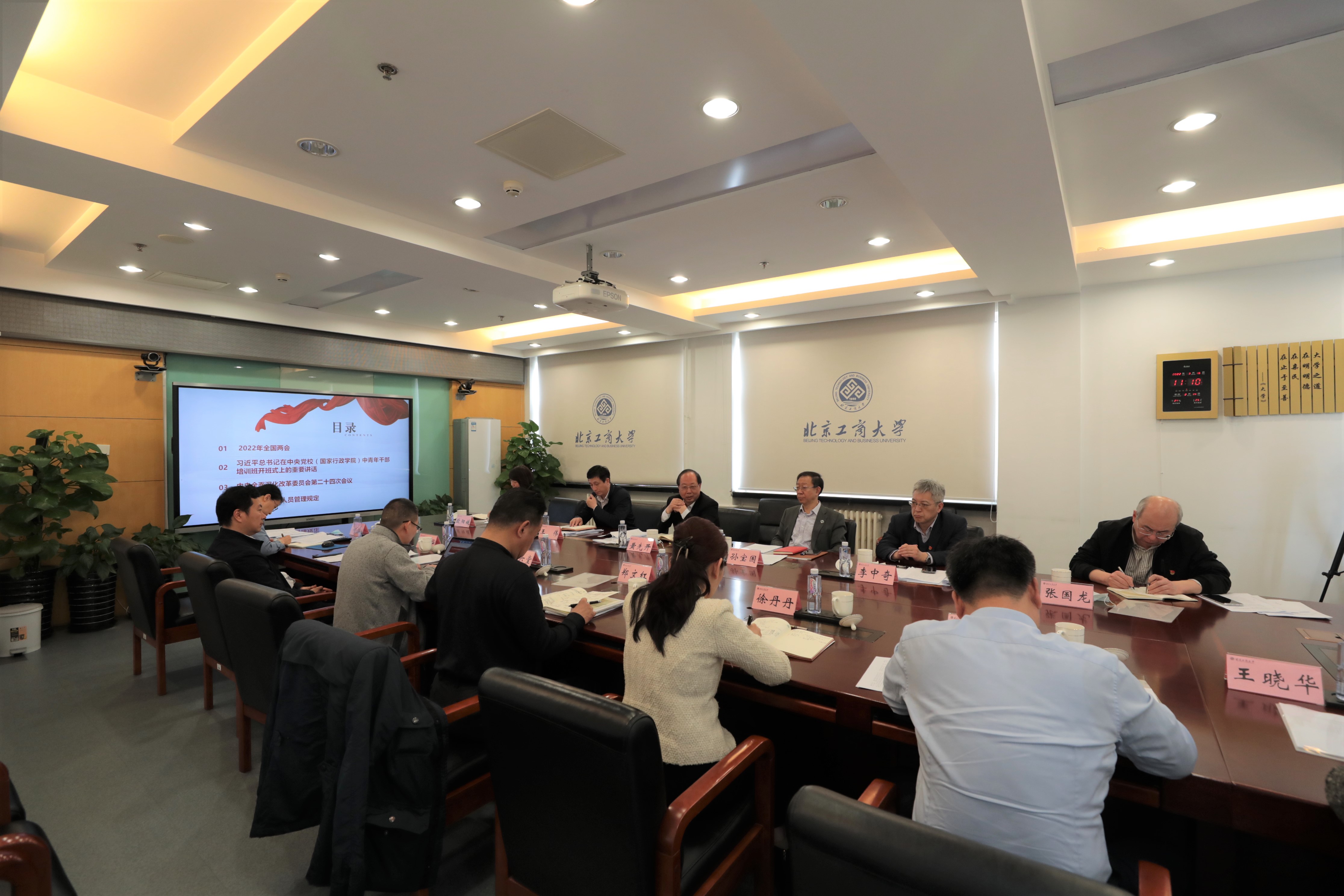 黨委書記黃先開在總結講話中指出,一是今年的全國兩會是在中國共產黨成立100周年、黨的十九屆六中全會之后,黨的二十大召開之前這一特殊時間節點舉行的一次重要會議,面對國際形勢深刻復雜變化、百年變局與世紀疫情交織疊加,習近平總書記兩會期間重要講話精神為奮進新征程、建功新時代堅定了信心,指明了方向,要深刻學習領會,堅決貫徹落實。二是要心懷“國之大者”,聚焦國家戰略,貫徹落實“四個面向”的戰略要求,吃透把準國家和行業發展戰略需要和政策導向,要準確思辨、科學應變、主動求變,全面謀劃學科布局和專業建設,結合學校發展實際,堅持商科做強工科做精,進一步加強基礎學科人才培養。三是習近平總書記在中央黨校中青年干部培訓班開班式上的重要講話飽含對年輕干部的殷切期望,為加強新時代干部隊伍建設提供了行動指南,為學校干部教育培養指明了方向和路徑,具有極強的針對性和指導性,要進一步加強對中青年干部的選拔、培養、教育、管理等工作,不斷提升干部隊伍質量。全校上下要統一思想,凝聚共識,齊心協力,領導帶頭,狠抓落實,全力推動學校各項工作取得新突破,加快推進學校“雙一流”建設,以實際行動和優異成績迎接黨的二十大勝利召開。