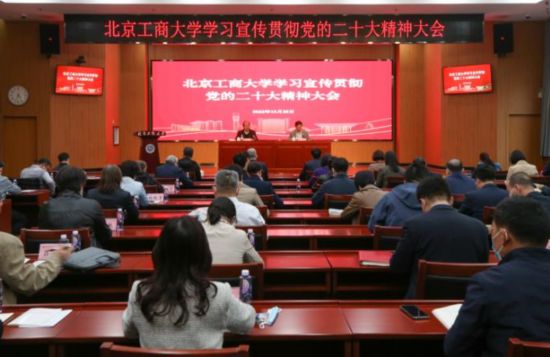 隨后,根據(jù)上級部署和要求,學(xué)校研究制定《北京工商大學(xué)學(xué)習(xí)宣傳貫徹黨的二十大精神的工作方案》,明確任務(wù)要求、細(xì)化分工協(xié)作,精心籌劃多種活動,將知行合一貫通始終,把學(xué)習(xí)貫徹落實(shí)黨的二十大精神與習(xí)近平總書記關(guān)于教育的重要論述緊密結(jié)合,與深入貫徹北京市第十三次黨代會精神緊密結(jié)合,全面落實(shí)立德樹人根本任務(wù),大力推進(jìn)學(xué)校高質(zhì)量發(fā)展,形成新征程有新作為的生動局面。