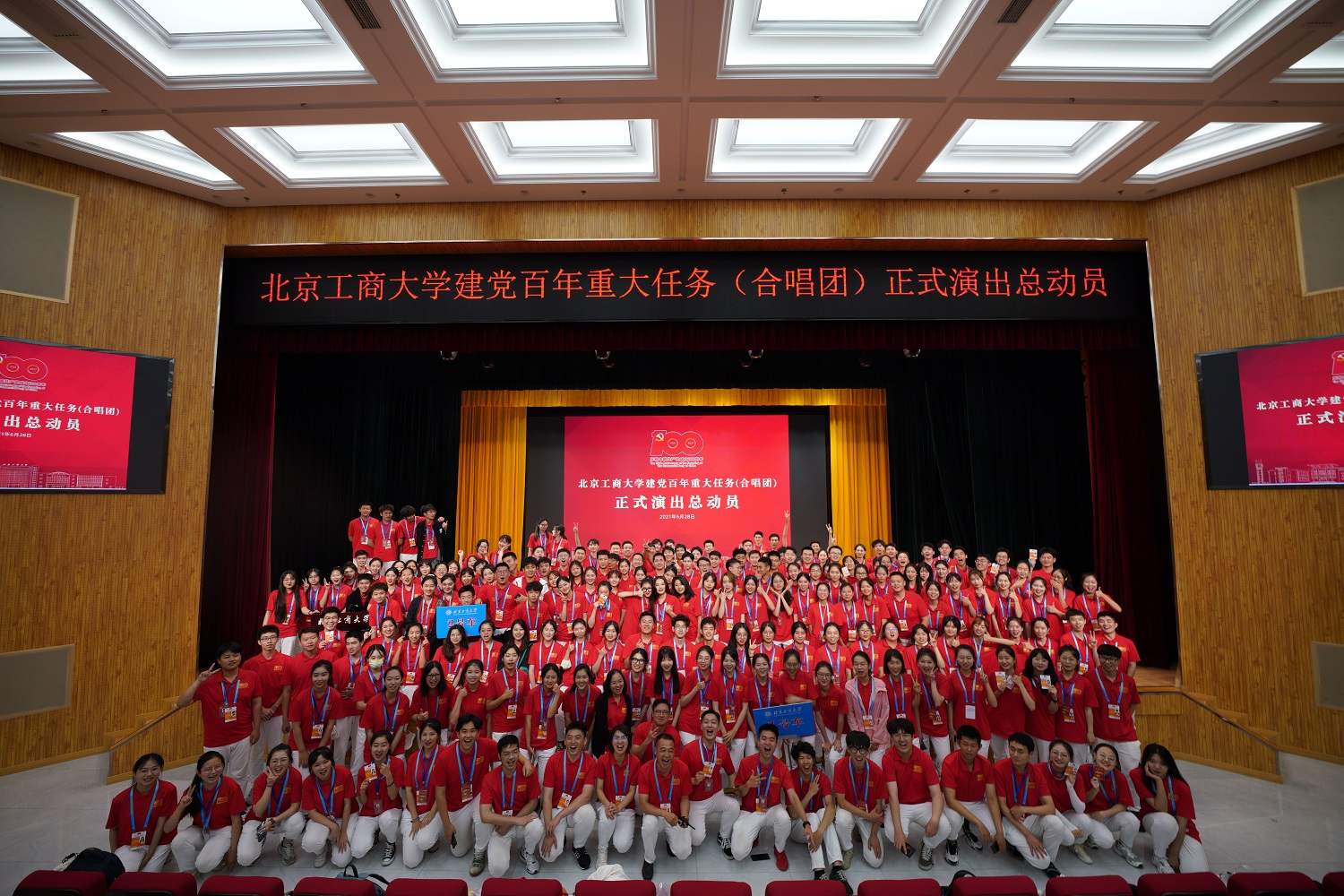 5月17日,學(xué)校召開專題會(huì)議部署合唱團(tuán)工作。各學(xué)院聞令而動(dòng)、高效運(yùn)轉(zhuǎn),僅用兩天時(shí)間,完成了動(dòng)員、報(bào)名、選拔等系列工作,共選拔204名師生和5名后備參與建黨百年文藝晚會(huì)合唱工作。5月23日合唱團(tuán)成立動(dòng)員大會(huì)在良鄉(xiāng)主校區(qū)舉行,會(huì)上宣布成立北京工商大學(xué)建黨百年重大任務(wù)(合唱團(tuán))臨時(shí)黨總支,隨后在工作專班和臨時(shí)黨總支的領(lǐng)導(dǎo)下,在學(xué)校各相關(guān)部門齊心協(xié)力和大力支持下,合唱團(tuán)訓(xùn)練、保障、疫情防控各項(xiàng)工作有序推進(jìn)。
