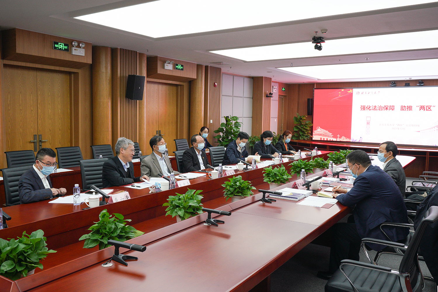 會上,殷勇副市長與我校“兩區”體制機制改革研究團隊座談交流“兩區”體制機制改革有關工作。學校“兩區”體制機制改革研究團隊負責人、法學院李晗副教授匯報研究工作情況,她圍繞推進法定機構試點、設立新型研究機構、完善激勵機制和容錯機制、完善評估考核和監督機制等方面,針對“兩區”管理體制機制創新中的難點和痛點問題進行闡述;并代表學校作《以首善標準推動“兩區”“三平臺”建設 打造服務北京“高校樣板”》專題匯報,展示了我校服務“兩區”建設等方面的多項示范性成果。