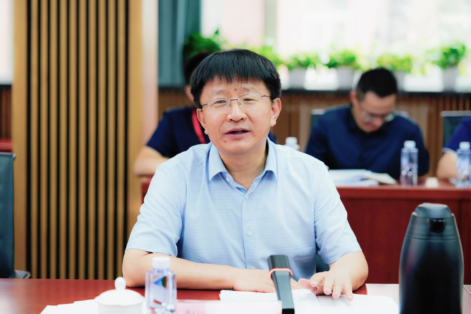 郭建華在總結(jié)發(fā)言中強(qiáng)調(diào),要以本次教育教學(xué)審核評(píng)估為契機(jī),對(duì)學(xué)校的教育教學(xué)情況進(jìn)行全面梳理。他指出,要進(jìn)一步明確學(xué)校的培養(yǎng)特色,思考專業(yè)的動(dòng)態(tài)調(diào)整方向以及教學(xué)模式的改革,堅(jiān)持以本為本,全校各部門、各學(xué)院通力協(xié)作形成合力,共同為建設(shè)高水平的研究型大學(xué)努力奮斗。他從宏觀層面就教育教學(xué)審核評(píng)估工作提出了三點(diǎn)要求:一是要統(tǒng)一思想,提高站位,深刻領(lǐng)悟本科教育教學(xué)審核評(píng)估的核心要義;二是要把握機(jī)遇,迎接挑戰(zhàn),抓住審核評(píng)估的機(jī)遇和挑戰(zhàn),全面提升教育教學(xué)質(zhì)量;三是要同心協(xié)力,全員共建,形成全校上下共同推進(jìn)審核評(píng)估工作的良好氛圍,高質(zhì)量完成各項(xiàng)審核評(píng)估工作,真正做到以評(píng)促建、以評(píng)促改、以評(píng)促管、以評(píng)促強(qiáng)。