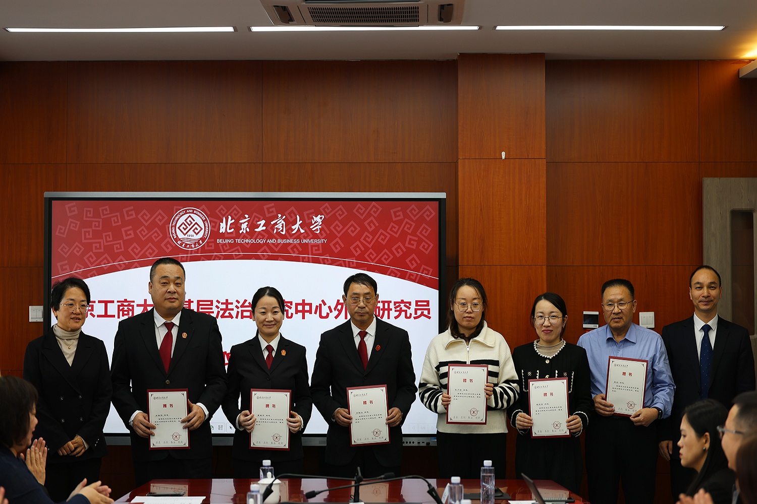12月25日,北京工商大學基層法治研究中心揭牌儀式暨“基層社會治理的法治經驗與展望”研討會在學校良鄉校區成功舉辦。北京工商大學黨委常委、紀委書記、二級高級監察官楊紅,房山區人民法院院長齊瑩和房山區司法局局長王媛出席會議并致辭。揭牌儀式由北京工商大學法學院黨委書記胥陽主持。