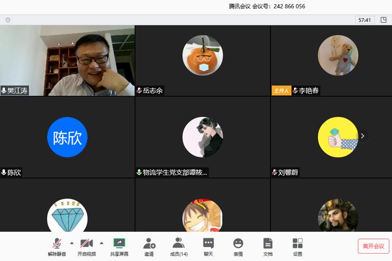 樊江濤在兩次視頻會上結合疫情阻擊戰做了黨課教育,他用一個個事例數據對比了中外新冠肺炎疫情防控工作,引導大家深入理解黨的十九屆四中全會關于推進國家治理體系和治理能力現代化的精神,深入理解總體國家安全觀、人類命運共同體等“中國理念”,深入理解中華優秀傳統文化和黨的教育方針對于國民教育的重要性,號召黨支部團結帶領黨團員沖鋒在前,再接再厲,用實際行動向打贏疫情阻擊戰交出滿意的答卷,并結合專業就疫情對產業結構、消費習慣、文化生活方式帶來的影響開展學術性研討。他提醒大家要清醒地看到西方反華勢力利用疫情對我國的丑化抹黑,在意識形態領域對崛起的中國極盡所能地圍追堵截、打壓滲透,引導大家認識意識形態斗爭的長期性和艱巨性,牢固樹立“四個意識”,堅定“四個自信”,堅決做到“兩個維護”。