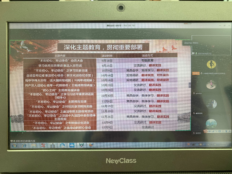 為緊密圍繞貫徹落實(shí)習(xí)近平總書記關(guān)于高校黨的政治建設(shè)重要批示精神,全面落實(shí)學(xué)?;鶎狱h建工作考核要求,5月6日下午,外國(guó)語(yǔ)學(xué)院黨總支召開2019年度黨支部書記抓黨建“線上+線下”述職評(píng)議考核會(huì)。學(xué)院黨總支書記、院長(zhǎng)、總支委員、黨外人士、學(xué)生黨員代表等組成的考核小組成員參加會(huì)議,會(huì)議由黨總支副書記于濤主持。