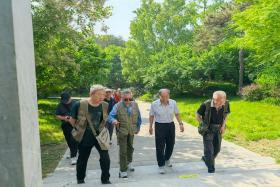 86歲的孟祥玉老師作為活動中資歷最深的老同志之一,精神矍鑠,全程參與,每到一處景觀都興致勃勃,用親身實踐細細感悟著景觀所蘊含的厚重歷史,汲取更多啟迪帶來的青春活力,成為活動獨特的一道風景。