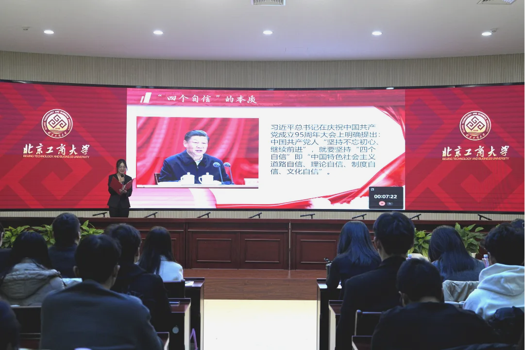 為學習宣傳貫徹黨的二十大和二十屆三中全會精神,深入貫徹落實習近平總書記關于青年工作的重要思想,著力提高黨的創新理論“青年化”闡釋能力。12月11日下午,“青春為中國式現代化挺膺擔當”北京工商大學“活力團支部”主題團日評比暨青春微團課示范展演在我校良鄉主校區舉辦。北京中醫藥大學團委書記宋珊珊、首都師范大學良鄉校區基礎學部黨總支副書記郭猛、中國社科院大學團委副書記謝麗泉、我校團委書記單紫薇、副書記王若冰、團委干部、各學院團委書記、基層團支部代表、星火團校全體學員參加活動。