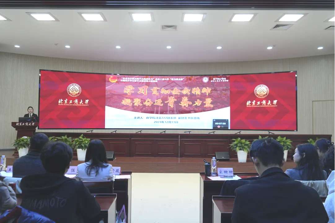 商學院注會222團支部以“學習貫徹全會精神,凝聚奮進青春力量”為主題,講述了新時代青年如何響應號召,在國防建設、社會實踐與科技創新等方面貫徹黨的二十屆三中全會精神。團課首先介紹了北工商學子攜筆從戎,積極參與國家建設和維穩任務;接著講述了商學院青年學子通過支教等社會實踐活動,為偏遠地區大中小思政教育一體化發展添磚加瓦的故事;最后分享了商院學子積極參與科創項目,將專業知識應用于解決實際問題的實例。旨在激勵青年一代胸懷國之大者,應有以實際行動書寫青春答卷的決心,通過貫徹黨的二十大精神,為國家發展貢獻青春力量。