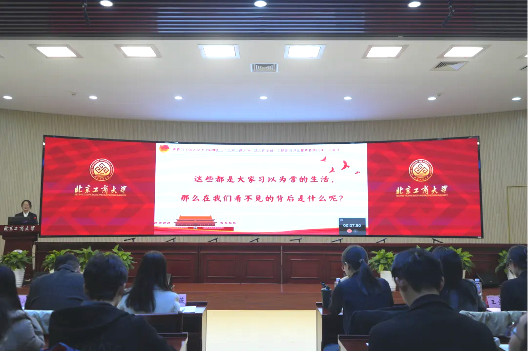 在全面建設社會主義現代化國家的新征程上,中國式現代化正以嶄新的姿態展現在世界面前。我校團委將以青春微團課示范展演為契機,強化團干部隊伍的建設與能力錘煉,緊密團結并引領廣大團員青年,以更加飽滿的熱情、更加堅定的信念,投身到中國式現代化的偉大實踐中去。希望廣大團員青年攜手并進,挺膺擔當,不負韶華,不負時代,用青春的筆觸,繪就屬于北工商青年的壯麗畫卷!