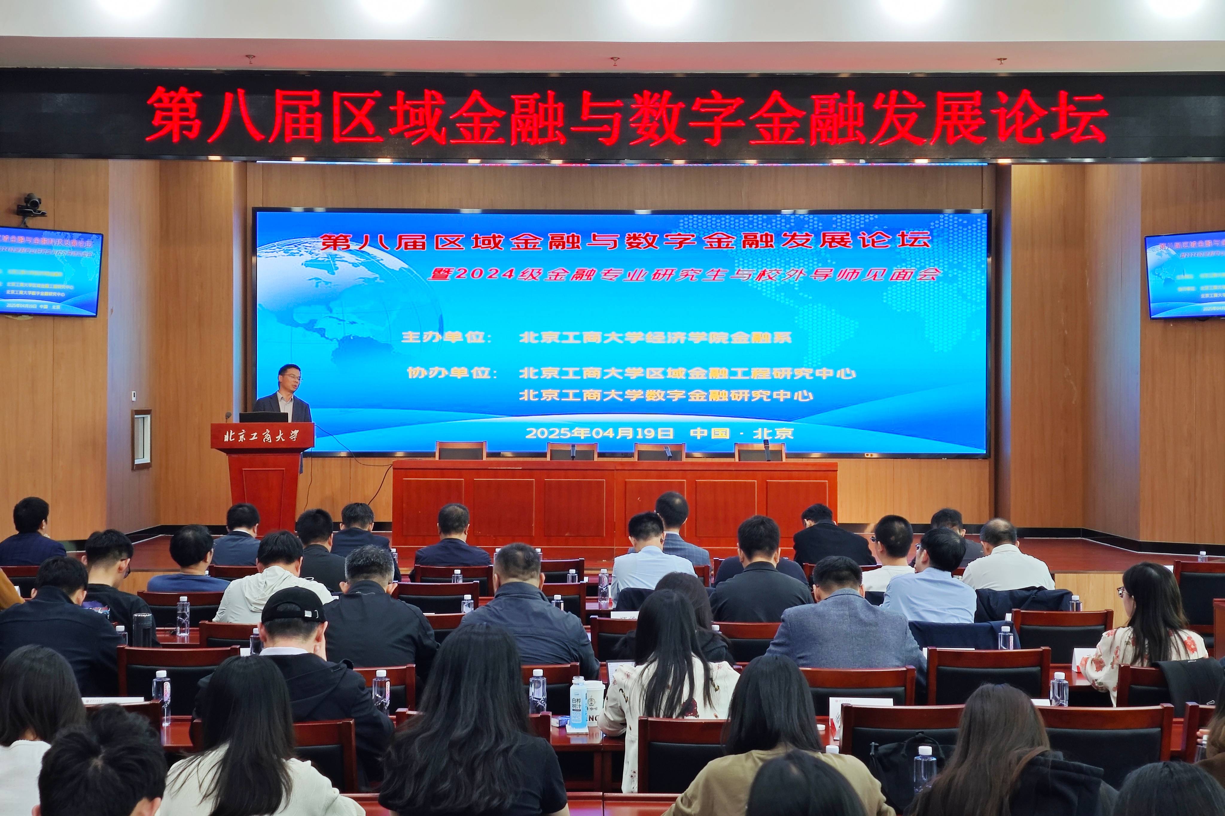 2025年4月19日,由北京工商大學(xué)經(jīng)濟(jì)學(xué)院金融系主辦,區(qū)域金融工程研究中心、數(shù)字金融研究中心協(xié)辦的“第八屆區(qū)域金融與數(shù)字金融發(fā)展論壇暨2024級(jí)金融專業(yè)研究生校外導(dǎo)師見(jiàn)面會(huì)”,在北京工商大學(xué)阜成路校區(qū)召開(kāi)。會(huì)議聚焦“區(qū)域金融與數(shù)字經(jīng)濟(jì)協(xié)同發(fā)展”“金融強(qiáng)國(guó)視域下的人才培養(yǎng)”等議題,吸引學(xué)界專家、企業(yè)導(dǎo)師及校內(nèi)外師生百余人參會(huì)。