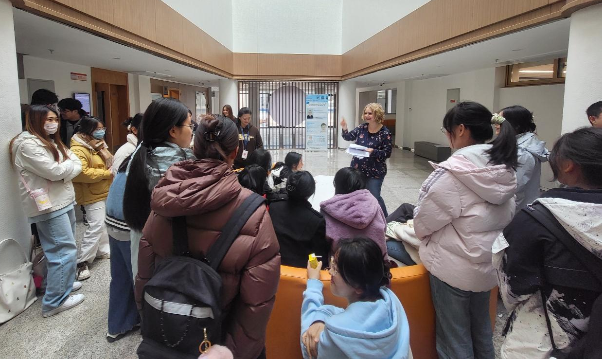 11月6日、7日和8日中午12:30,語言與傳播學院在良鄉主校區連續舉辦三期外語角活動。此次外語角的活動主題為“初見外教”。語言與傳播學院院長王擎、副院長史巖林、大學英語教學一部主任吳濛、外教管理部甘凌等老師和來自南非的外教Elna、來自英國的外教Tim、來自西班牙的外教Maria與同學們見面交流。