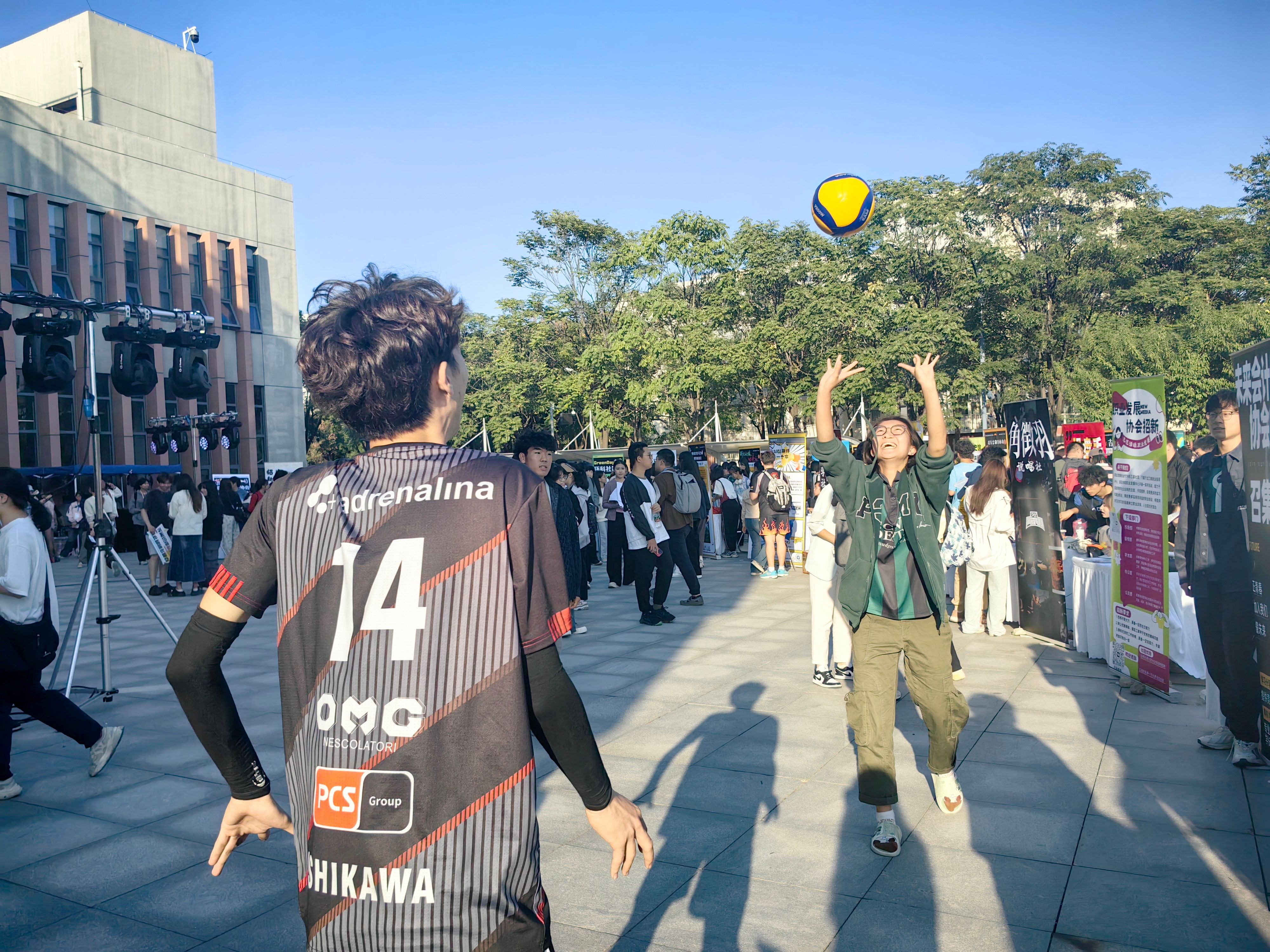 盡管天氣漸涼,但夢想的火焰依然熾熱,活動現(xiàn)場,人聲鼎沸。不同類別的社團(tuán)各展所長,相互交流,熱鬧非凡。同學(xué)們在心儀的社團(tuán)展位前駐足交流,共話未來。