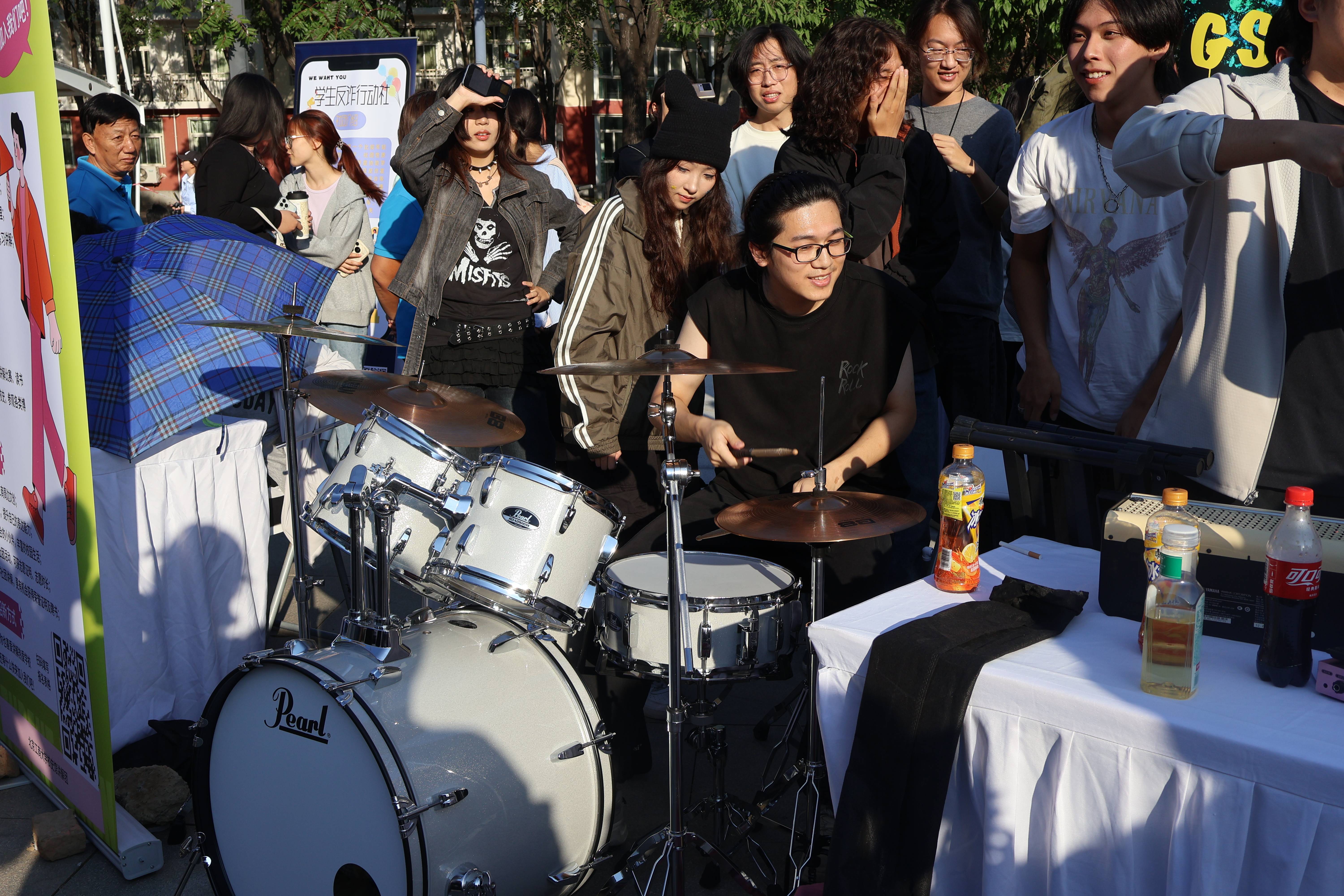 在百團(tuán)大“綻”的舞臺,各個(gè)社團(tuán)用音樂、舞蹈、詩畫等慶祝祖國75華誕,讓這個(gè)初秋的微風(fēng)變得火熱激昂。