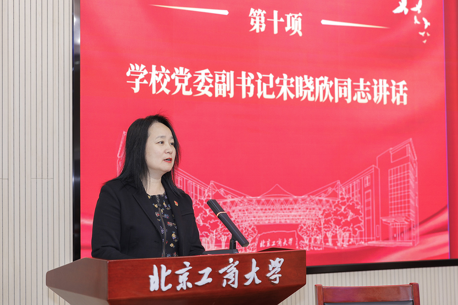 宋曉欣代表學校黨委對大會的召開表示熱烈的祝賀!她在講話中指出,法學院有著深厚的辦學底蘊和鮮明的辦學特色。五年來,學院黨委發揮黨建引領作用,在教育教學、人才培養、學科專業建設、科學研究、社會服務等方面取得了可喜成績,為學校發展作出了積極貢獻。她鼓勵師生黨員奮楫以航,主動融入學?!肮ど桃惑w化”發展,主動對接國家與首都所需,全面推動學院事業高質量發展。她對學院黨委提出四點希望:一是充分發揮黨建引領作用,為學院事業高質量發展提供堅強政治保證和組織保障。二是落實立德樹人根本任務,培養符合新時代首都發展的卓越法律人才。三是堅持特色差異化發展,以更大作為融入和服務新時代首都發展。四是持之以恒推進全面從嚴治黨,營造良好的政治生態、學術生態、育人生態。